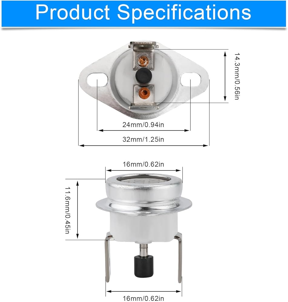 Widely Used: Limit switches are suitable for dual protection against overheating and overloading of motors, power supplies, lighting ballasts, transformers, automotive motors, integrated circuits. It is an excellent accessory for repairing refrigerators, gas stoves, and water heaters.