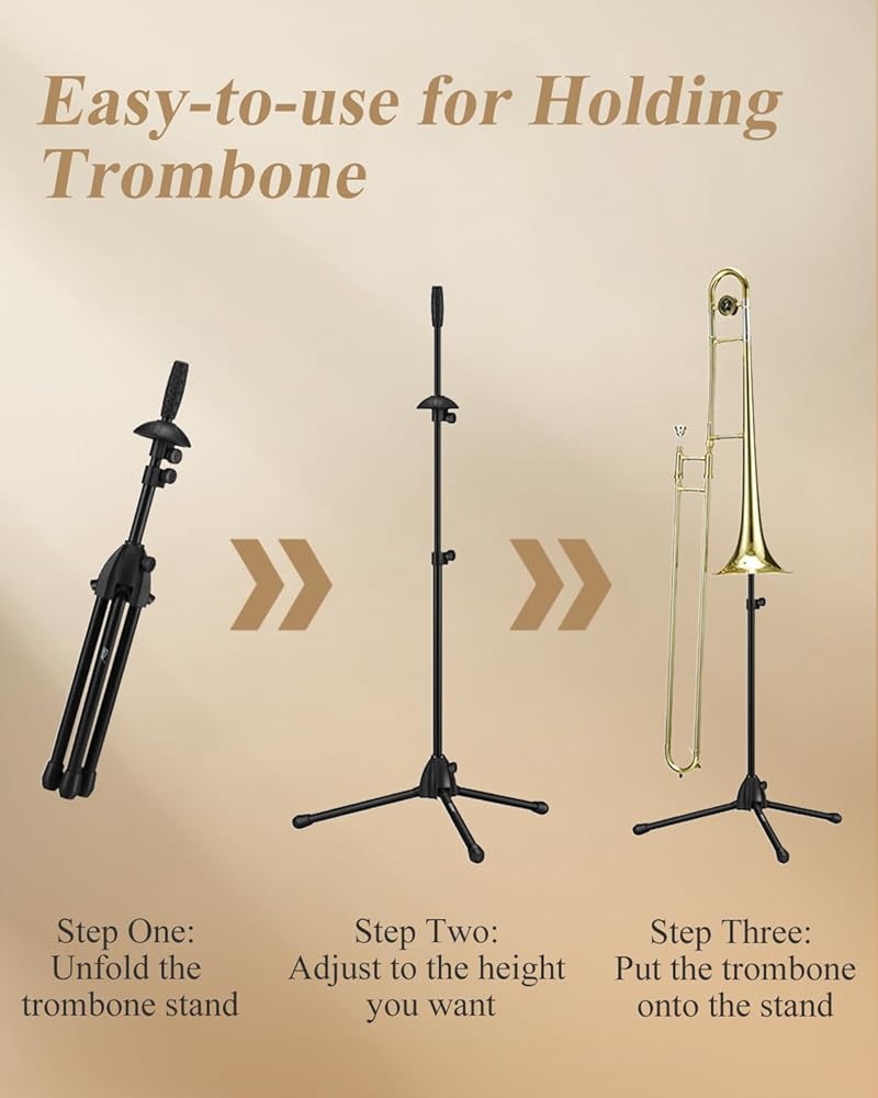 ※ هيكل محمول: يمكن طيه حتى 23.6 انش/60 سم، ويمكن وضعه في حقيبة قماشية لإخراجه، ليكون مناسبًا لمحبي الترومبون الذين يحتاجون إلى الخروج للعب وحضور الفصول الدراسية.