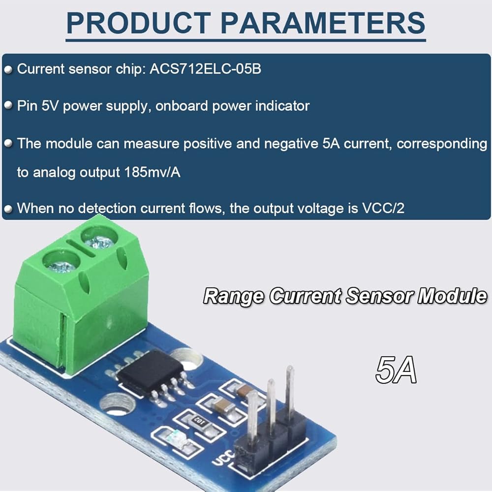 ⚡[Package includes]You will get 5 x ACS712 20A Range Current Sensor Module, 1 x 15Pin Female to Male Dupont Cable.