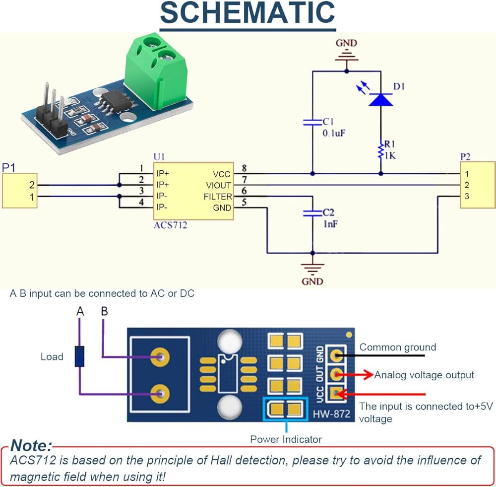 ⚡[Special reminder] ACS712 is based on the principle of Hall detection, try to avoid the influence of magnetic field when using it.