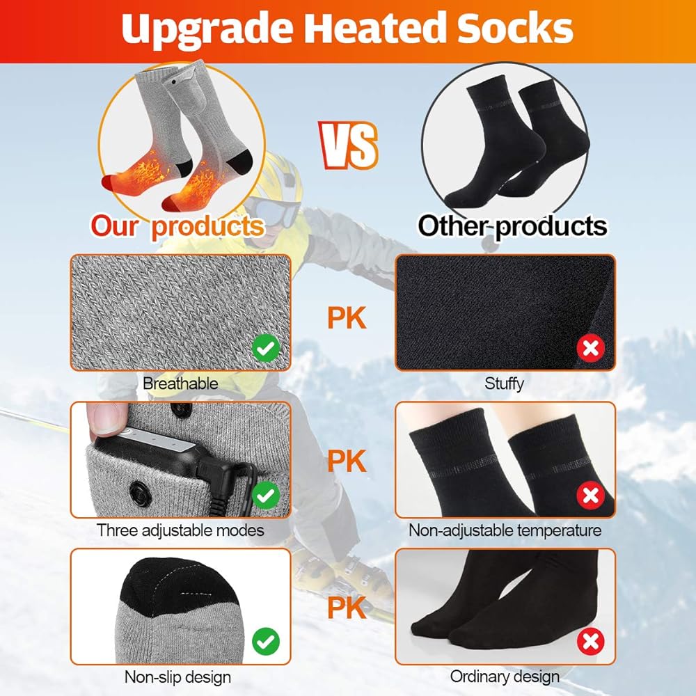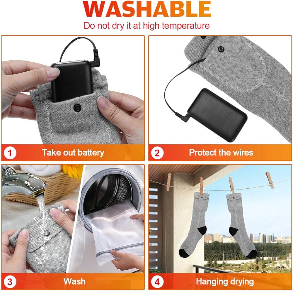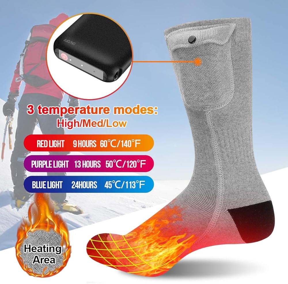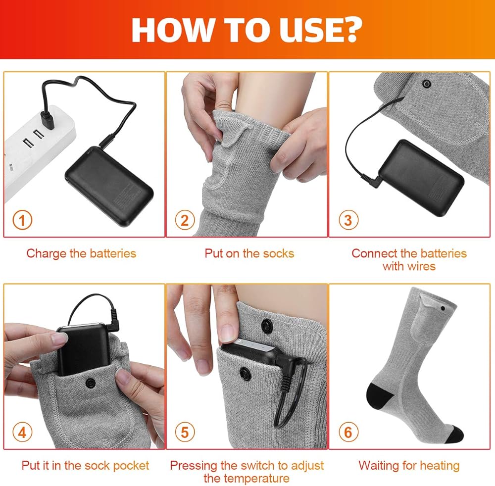 ➷ 【سهلة التحكم في درجة الحرارة】تحتوي هذه الجوارب القابلة لإعادة الشحن على 3 مستويات للتسخين. اضغط مع الاستمرار على الزر لمدة 3 ثوانٍ تقريبًا، وسيضيء الضوء الأحمر، ويمكن لزر الضغط القصير ضبط درجة الحرارة، واضغط لفترة طويلة مرة أخرى لإيقاف التشغيل.