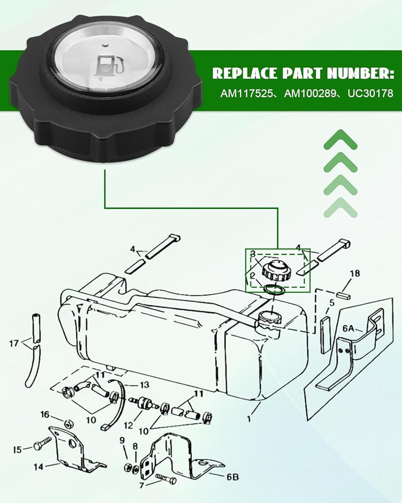 غطاء خزان الوقود مناسب لغطاء غاز John Deere Mower R70 R72 R92 160 165 170 175 180 185 240 245 260 265 285 320 قطعة استبدال غطاء الحشو # AM117525 AM100289 UC30178