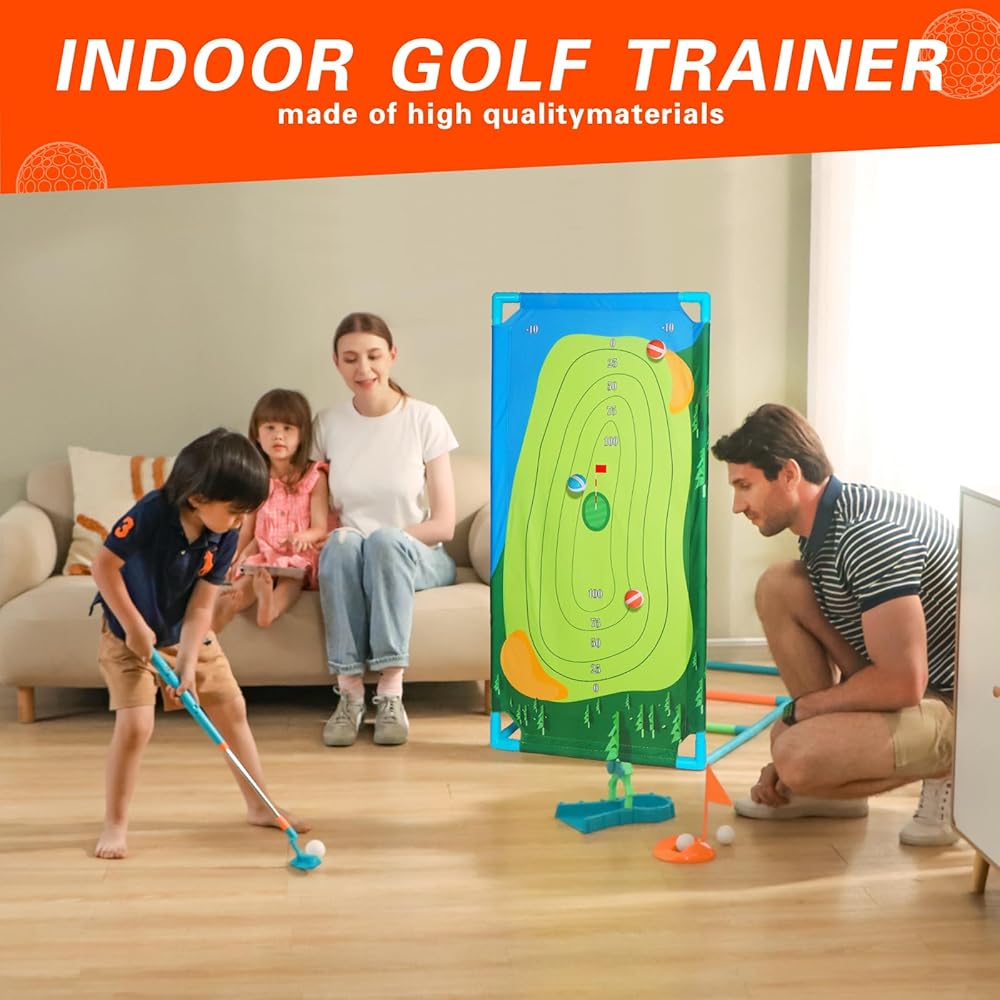 تساعد مجموعة سجادة تدريب الجولف ولعبة رمي السلم الأطفال على العمل على التنسيق بين العين واليد، ويمكن للآباء اللعب مع أطفالهم أو أصدقائهم.