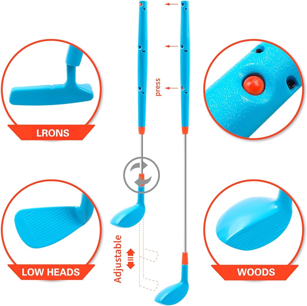 مجموعة ألعاب الجولف اللاصقة للأطفال 2 في 1 - لعبة كرة السلم ومجموعة ألعاب الجولف للأطفال في الفناء الخلفي - نوادي الجولف للأطفال القابلة للتعديل - ألعاب رياضية داخلية وخارجية للأطفال هدية
