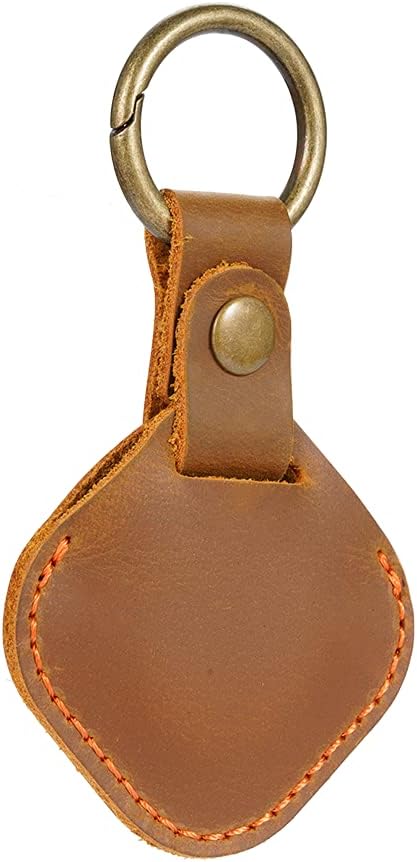 حامل بطاقة هوائية VIPERADE PJ25، غطاء حماية من الجلد الطبيعي لسلسلة مفاتيح AirTag لمكتشف طوق الكلب مع حلقة مفاتيح زنبركية متوافقة مع Apple New AirTag (الإصدار 2021) (بني)