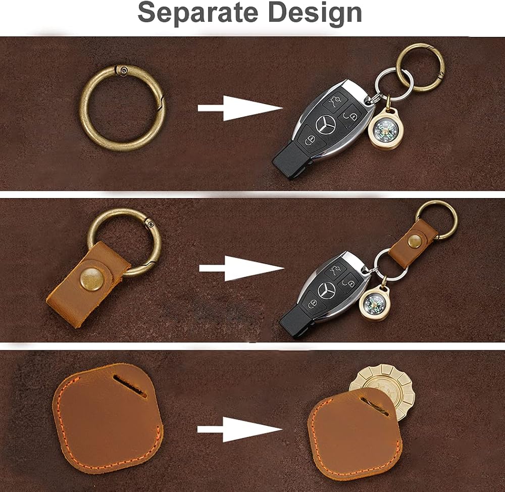 ✭ تصميم منفصل ومتعدد الوظائف - يتكون الغطاء الجلدي لجهاز AirTag (إصدار 2021) من 3 أجزاء: حلقة مفاتيح معدنية واحدة بتصميم اضغط للفتح، وحزام توصيل واحد بمشبك جلدي نحاسي قوي وحقيبة واحدة لتحميل AirTag. يمكنك اختيار الاستخدام معًا أو بمفرده وفقًا لاحتياجاتك.