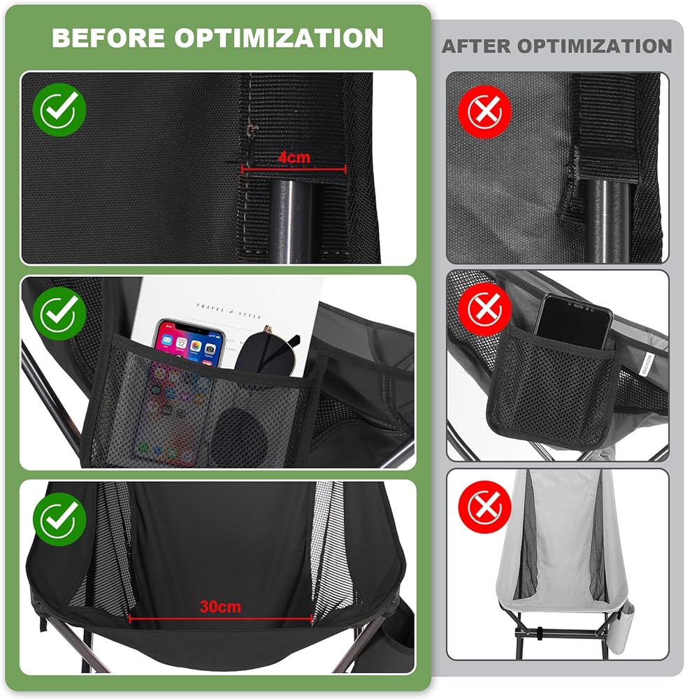 • ⛺[مادة متينة وقابلة للتنفس] - مصنوعة من قماش أكسفورد المتين 600D مع شبكة مسامية مصممة على كلا الجانبين لضمان الراحة حتى بعد الجلوس على الكرسي لفترة طويلة. هذا الكرسي ليس مناسبًا للنزهات الخارجية فحسب، بل أيضًا قابل للحمل والطي وسهل الحمل