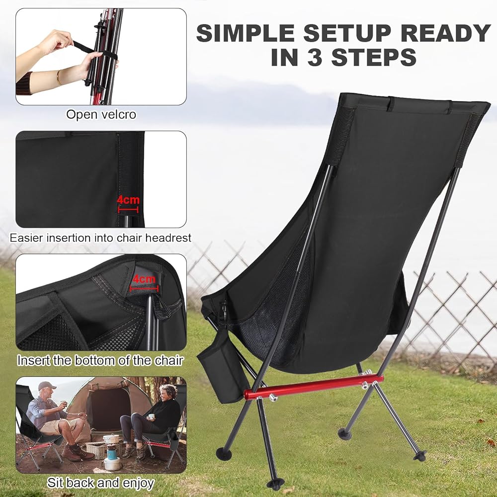• ⛺[هيكل ألومنيوم قوي] - مصنوع من إطار من سبائك الألومنيوم بدرجة الطائرات 7075، مما يجعل الكرسي ليس خفيفًا للغاية فحسب، بل قوي جدًا أيضًا. تزن حوالي 3 أرطال، ويمكن أن تصل سعة الوزن القصوى إلى 330 رطلاً، مما يضمن الثبات والمتانة. وفي نفس الوقت، فإنها تتخلص من المواد البلاستيكية لتجنب مشكلة الكسر