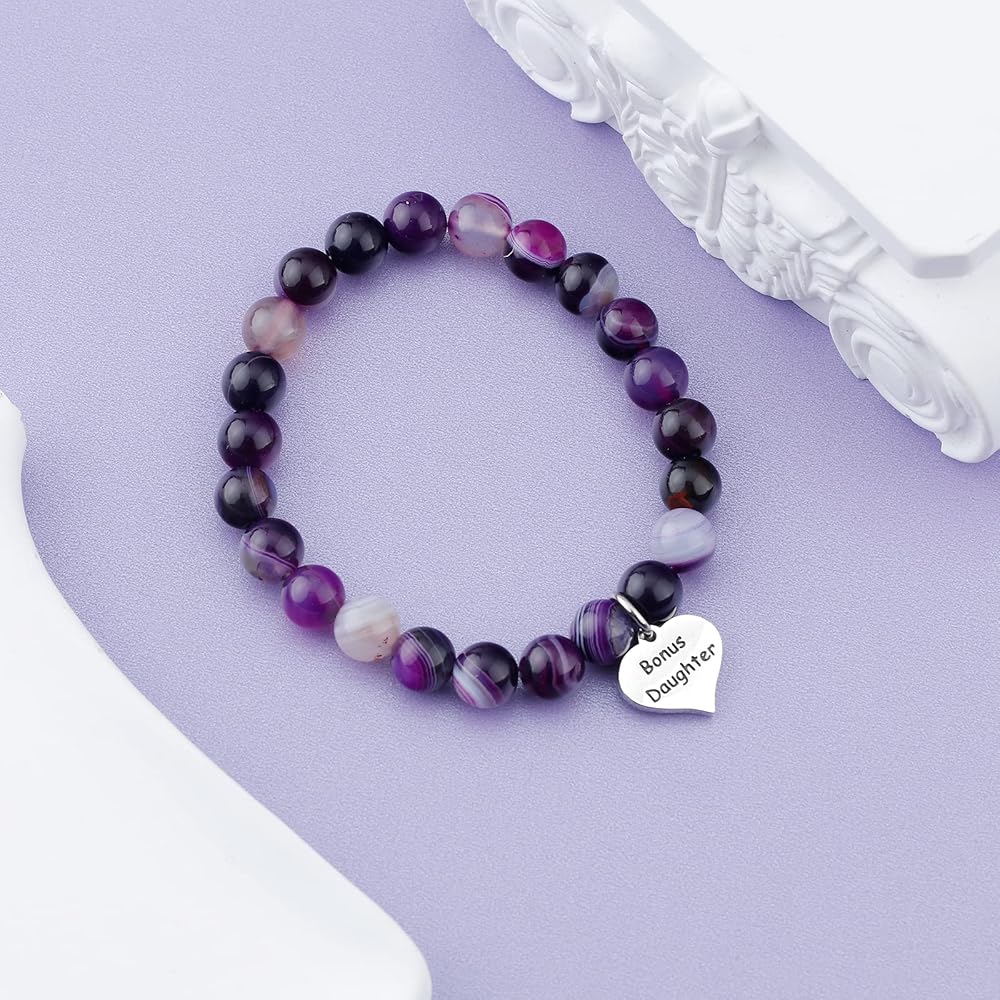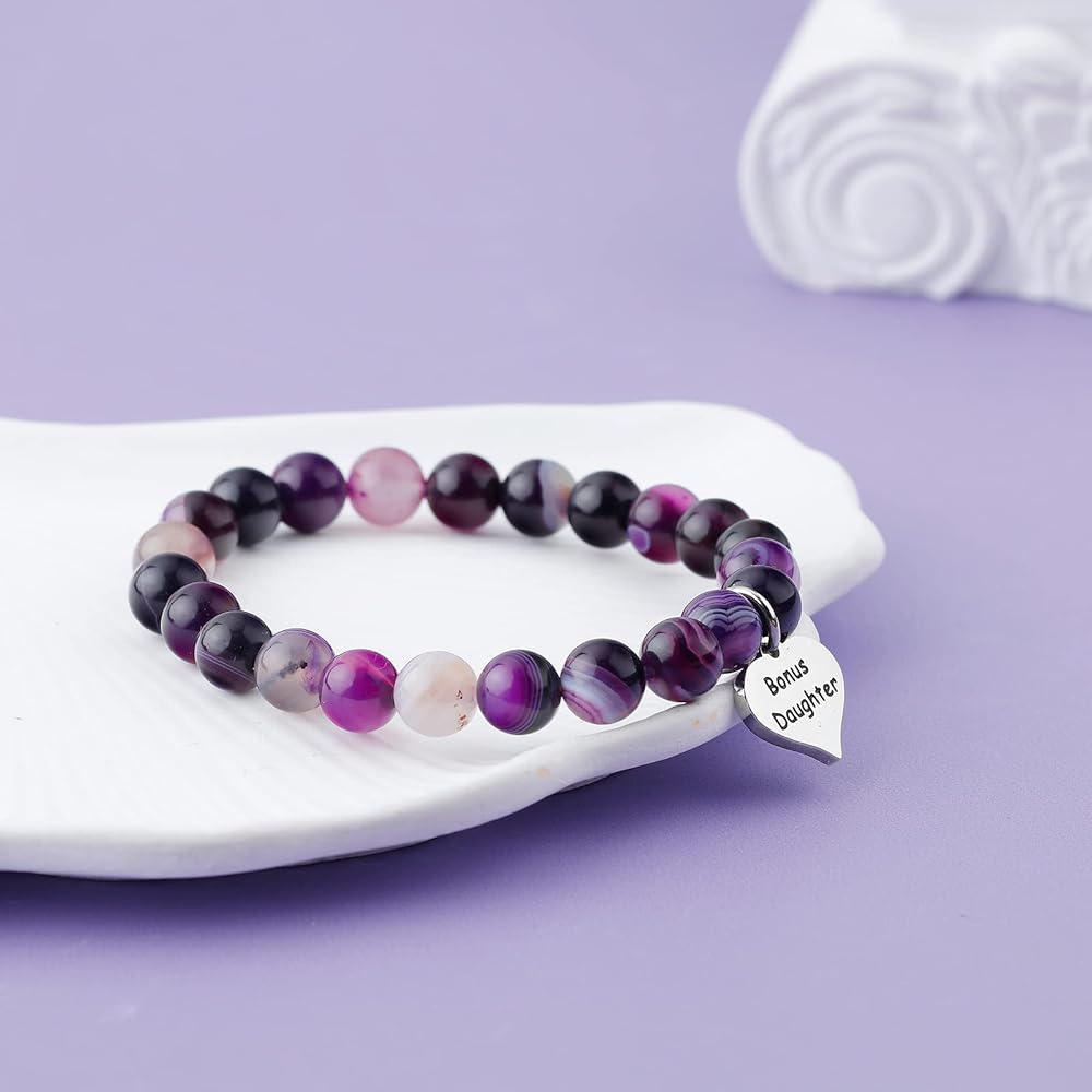 مواد هدايا الابنة: سوار الابنة هذا مصنوع من أحجار كريمة طبيعية، والتي تتمتع بقوى غامضة ويمكن أن تجلب طاقة إيجابية. في بعض الأحيان ننسى أن نخبرها بمدى حبنا لها، سوار الابنة هذا هو طريقة رائعة لإظهار حبك. سوف تكبر سعيدة وتستحم في حبك.