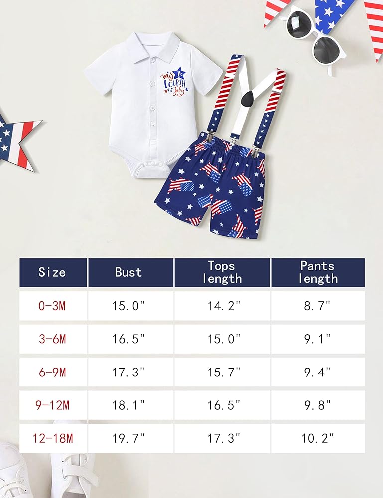 • 🗽【المقاس】ملابس للرضع في الرابع من يوليو مناسبة للطفل الرضيع زي الرابع من يوليو 0-3 أشهر، 3-6 أشهر، ملابس الرابع من يوليو للأولاد، ملابس الأطفال الرضع في الرابع من يوليو من 6 إلى 9 أشهر، أول الرابع من يوليو للأطفال الصبيان الزي 9-12 شهرا