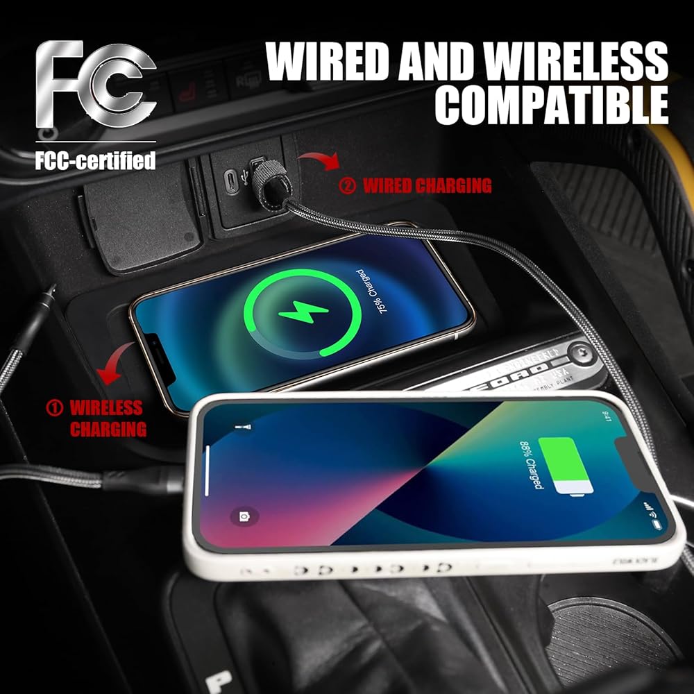• الإعداد: تم تصميم الشاحن اللاسلكي للعمل على باب برونكو 2/4 2021 2022 2023 2024 (لا يناسب الطراز الأساسي!).