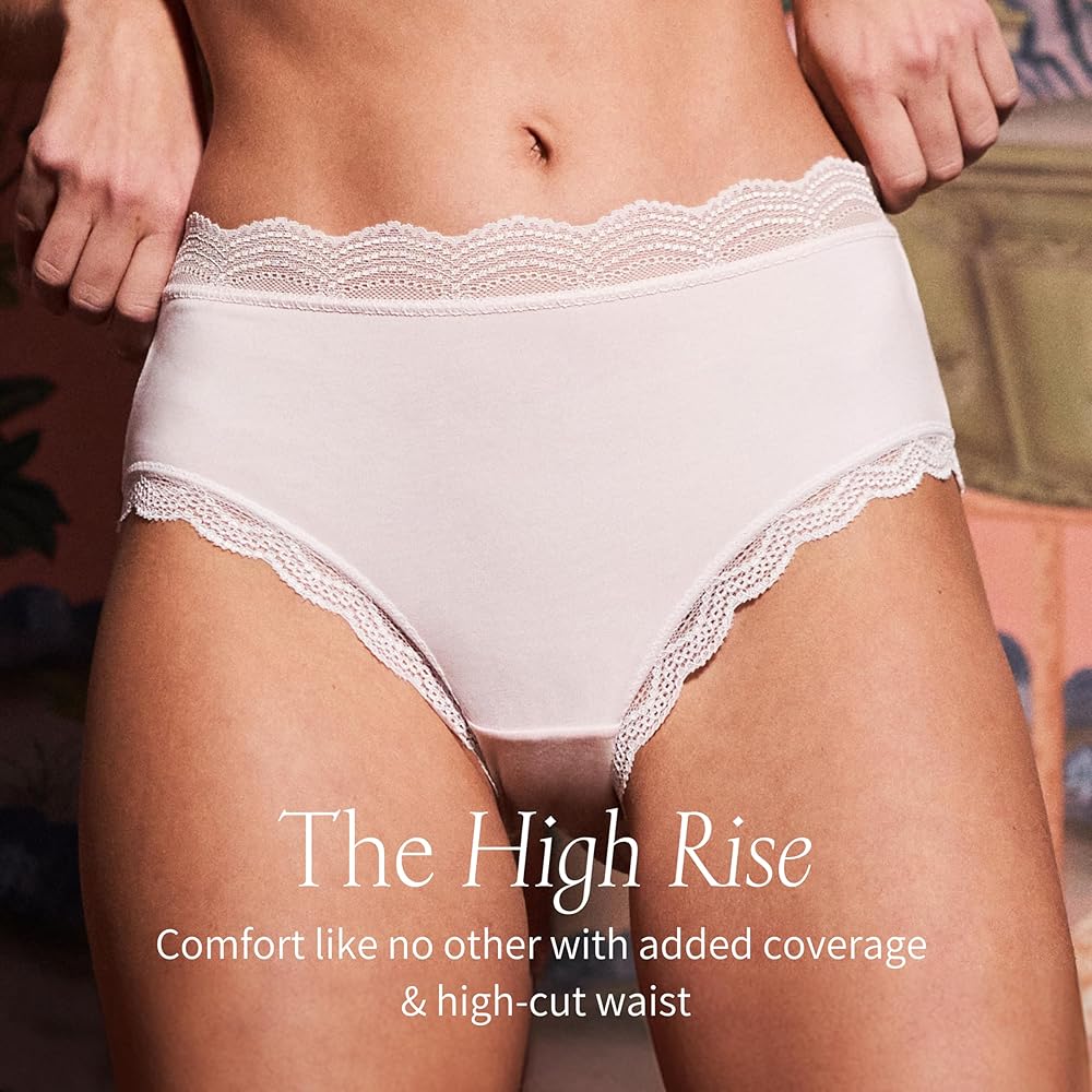 هذه السراويل الداخلية النسائية عالية الارتفاع هي القصة المثالية! على عكس الملابس الداخلية النسائية الأخرى، يتم وضع زخرفة الدانتيل بشكل مسطح حيث تلتقي بلوحة الملابس الداخلية لتقليل خطوط اللباس الداخلي.