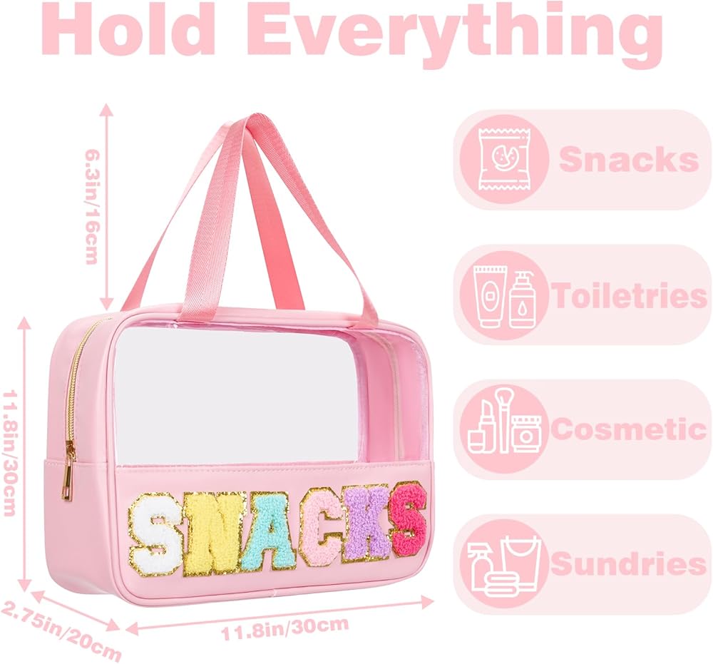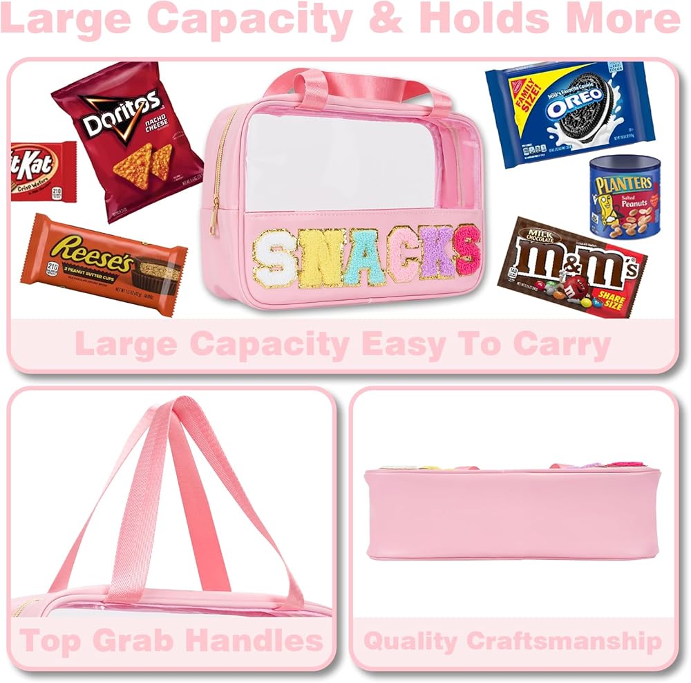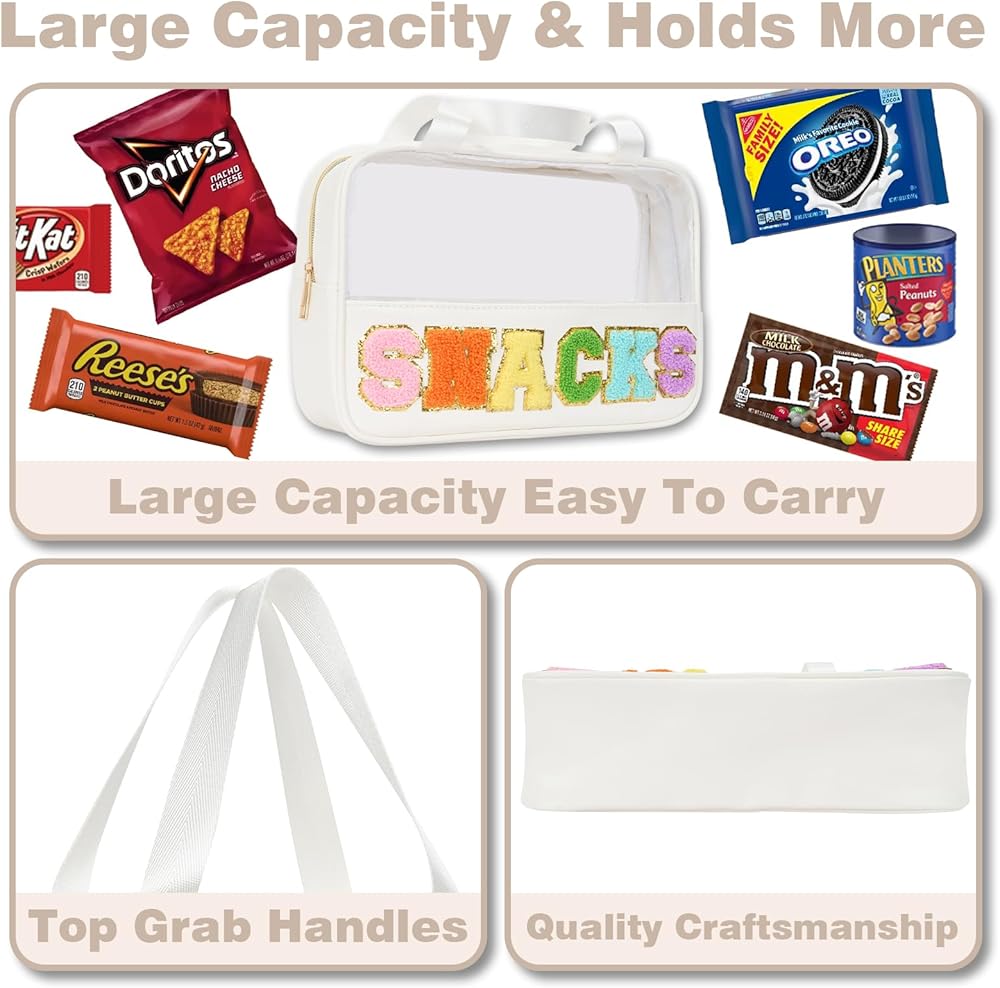 • جودة عالية: حقيبة الوجبات الخفيفة الشفافة الخاصة بنا مصنوعة من بولي كلوريد الفينيل الشفاف الصديق للبيئة وجلد البولي يوريثان عالي الجودة، وتتميز برؤية رائعة ومتانة ممتازة. الحواف مغلفة بالجلد الصناعي، مما يضمن المتانة والشعور بالأناقة. تم تصميم حقائب الوجبات الخفيفة هذه مع الاهتمام بالتفاصيل، وهي مجهزة بجيب بسحاب كبير السعة ومقبضين متينين، مما يوفر الراحة لحملك اليومي.