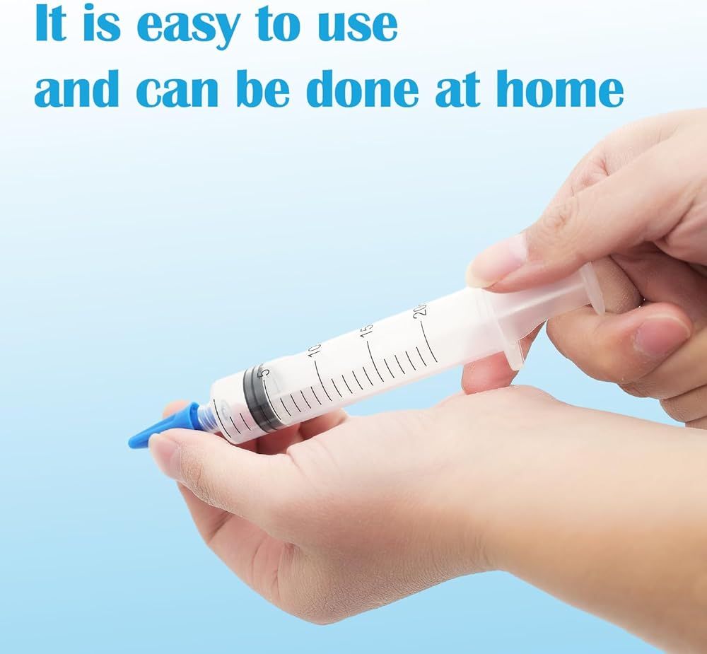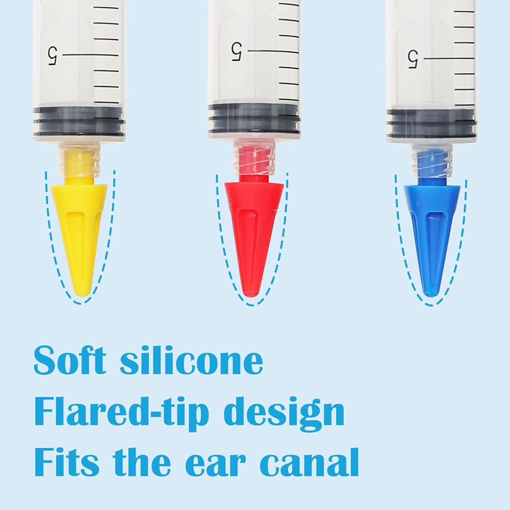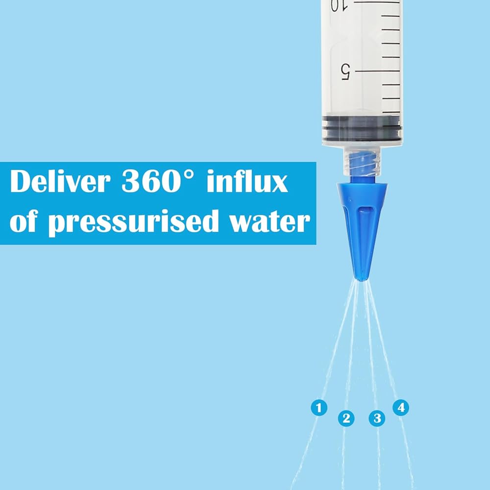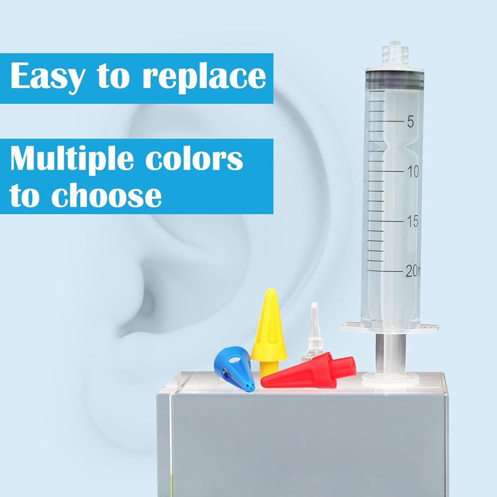 - Our earwax removal syringe features a four head soft silicone nozzle, which is a unique ear removal tool that can produce 360 ° water ingress.