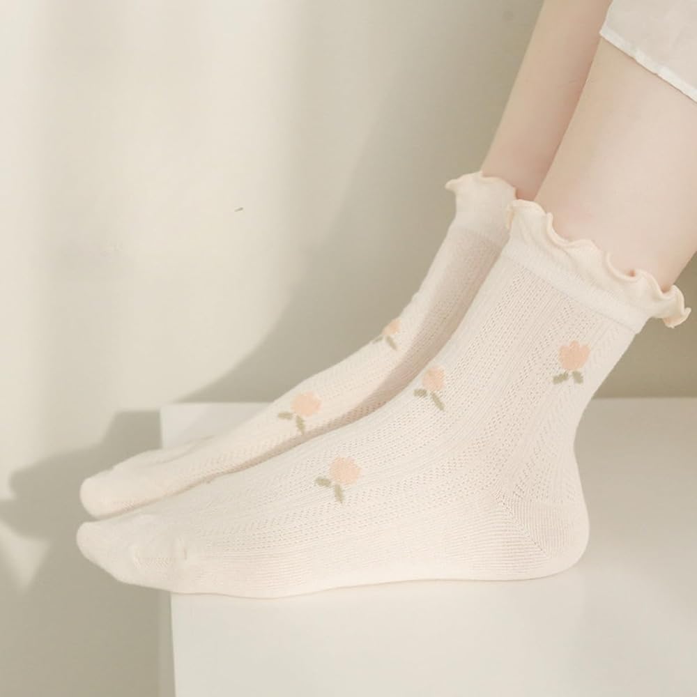 Versatile Style: These cute ruffle socks can be paired with different shoe styles, including mary jane shoes, lolita shoes, jelly shoes, and casual footwear. They effortlessly enhance your overall ensemble, adding a touch of sweetness and charm.