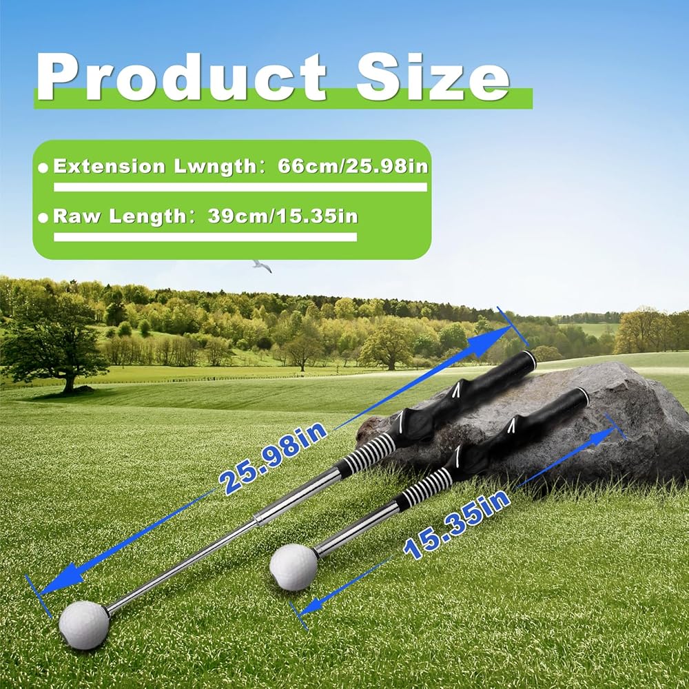 【مدرب جولف سوينغ】يتميز مدرب سوينغ كوتش بتصميم تلسكوبي فريد (يمتد بسلاسة من 15.35 بوصة إلى 25.98 بوصة) مع توقف دقيق عند الامتداد الكامل لضمان الحركة الدقيقة وتحسين التحكم في الطاقة والإيقاع. ينبعث صوت "نقرة" مع كل أرجوحة، مما يوفر ردود فعل فورية وتركيزًا أكبر على القوة الخام والإيقاع مع كل أرجوحة.