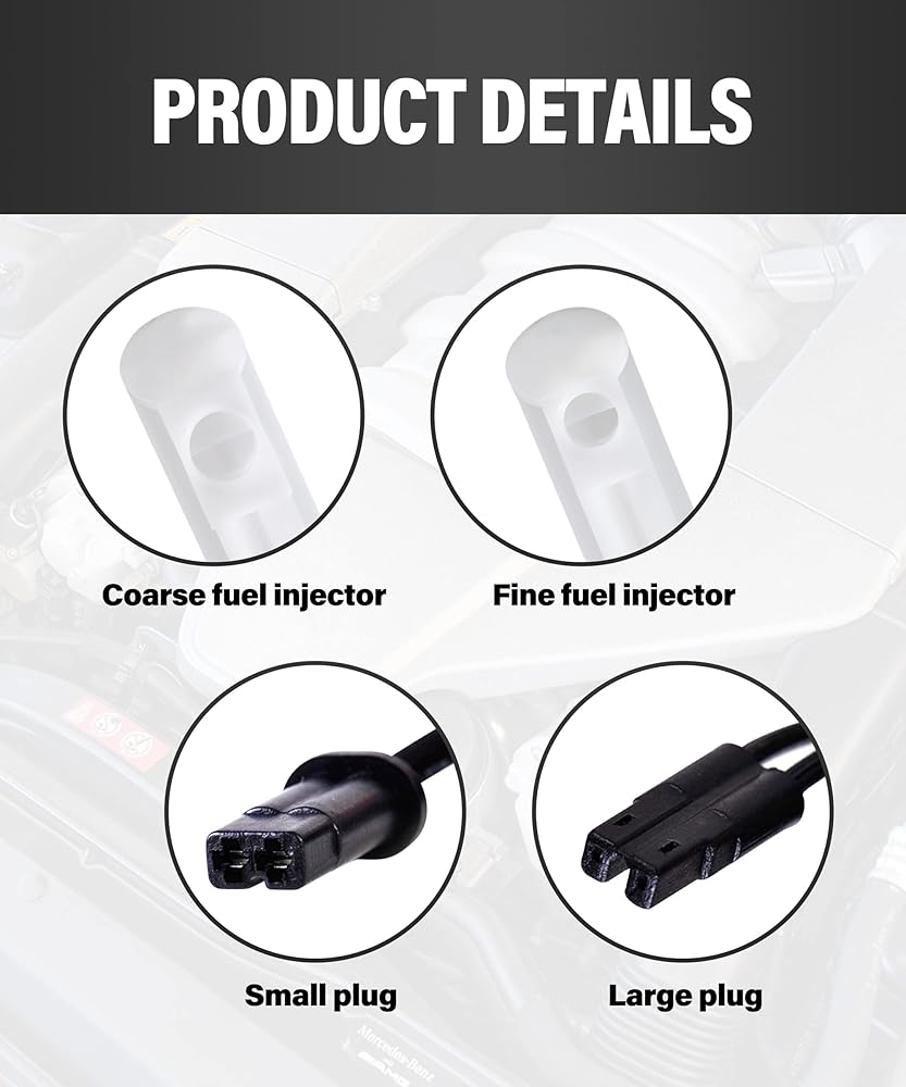 [Package Included] The package includes 2 white pipes and 2 crocodile clip charging cables, which can be installed with 2 different sizes of fuel injectors.
