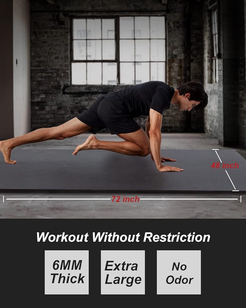 سجادة كبيرة للتمرينات المنزلية: سجادة تمرين كبيرة جدًا (6 × 4 بوصات) واسعة بما يكفي لتسمح لك بالقيام بأي وضعيات يوجا، والبيلاتيس، والتمدد، والتأملات وتمارين القلب المختلفة وتدريبات وزن الجسم مثل تمارين الضغط واللوح الخشبي والتمارين الرياضية.