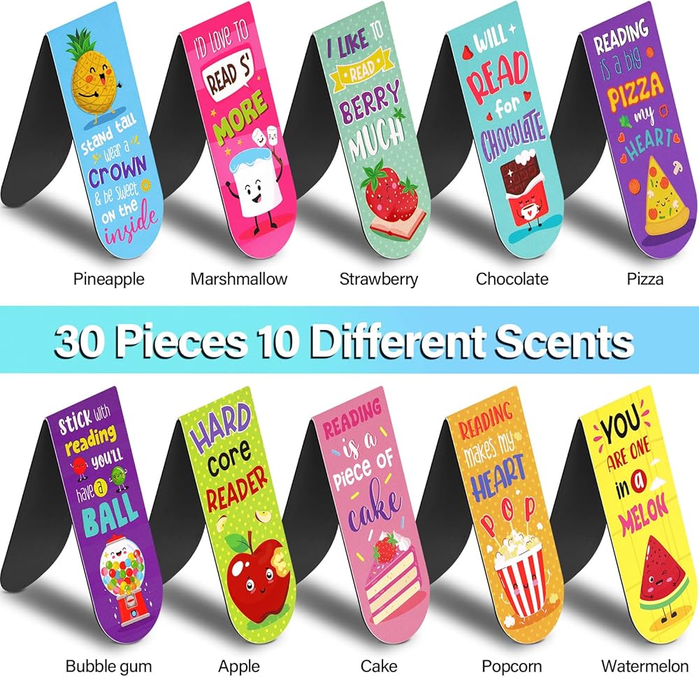 تصميم تأثير الرائحة: تأتي علاماتنا المرجعية الممتعة برائحة طويلة الأمد ورسوم توضيحية متنوعة، فهي ممتعة ولافتة للنظر، لذلك يمكن أن تجعل وقت القراءة الخاص بك أكثر متعة، وتساعد وتشجع الشباب الذين يحبون القراءة
