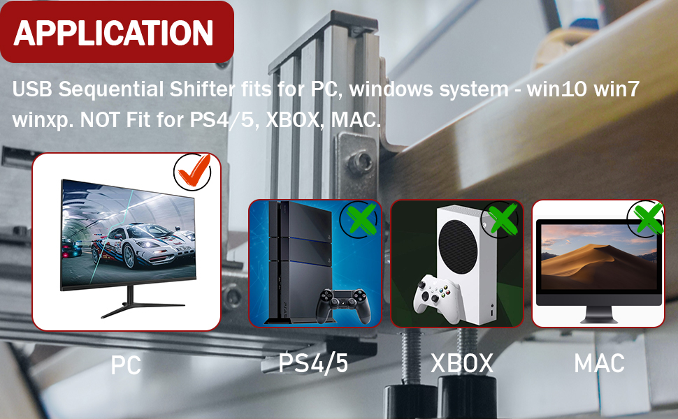 【التطبيق: محول USB متسلسل للكمبيوتر الشخصي ونظام ويندوز - Win10 Win7 WinXP. يأتي مقبض ناقل الحركة مع نظام مستقل، ويمكن استخدامه مع Logitech G25 G27 G29 G920 TH8A أو أي عجلة قيادة.