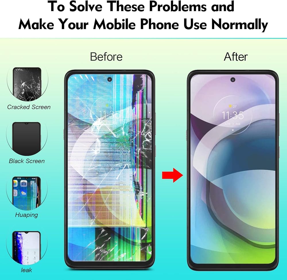 • LCD Repair & Replacement:MOTO One 5G Ace Front display screen kit is used to repair or replaced the screen no respond properly, display problems, distortion pixels, cracked LCD screens, wrong color issues and old LCD, with excellent color pixels and resolution; Let your mobile phone like new.
