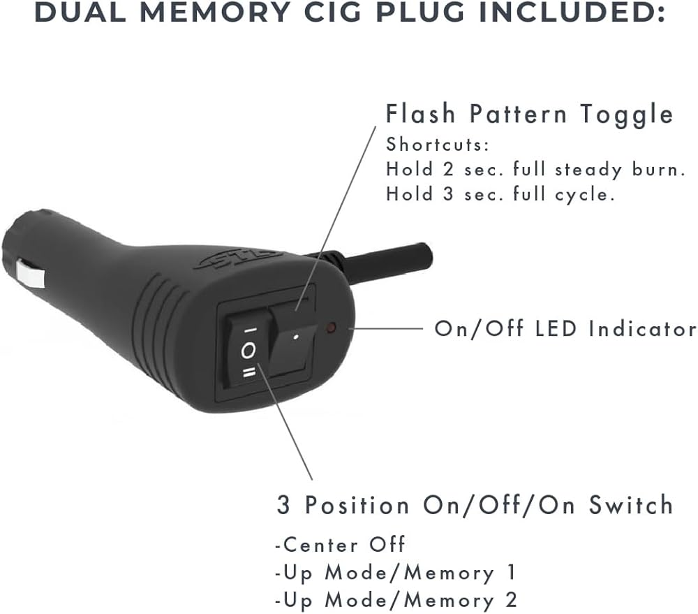 ذاكرة مزدوجة + 30 نمطًا قويًا/فلاشًا - استدعاء الذاكرة - اختر من بين مجموعة متنوعة من أنماط الطوارئ/التحذير ووظيفة الحرق القوية/الثابتة.