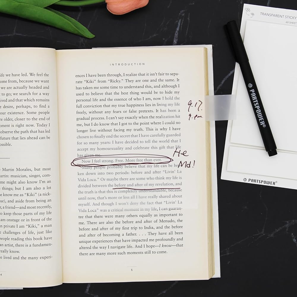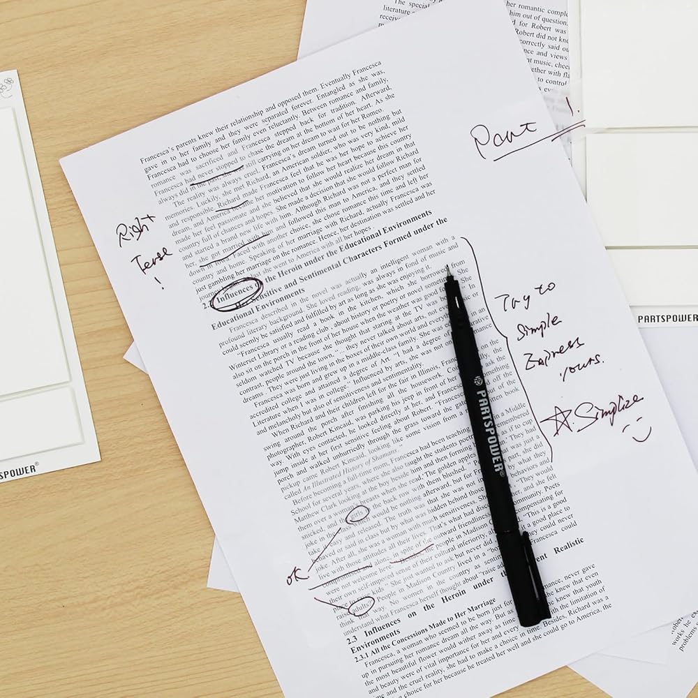 ✍【That You Must Know】Unlike paper note pads, these sticky notes are translucent/transparent made of PET (plastic), perform perfectly as annotation notes and nicely writable with fast dry pens, such as oil-based permanent pens markers, ballpoint pens and pencils. However, it would smudge somehow if you wrote with slow dry pens, such as ink pens, water-based markers.