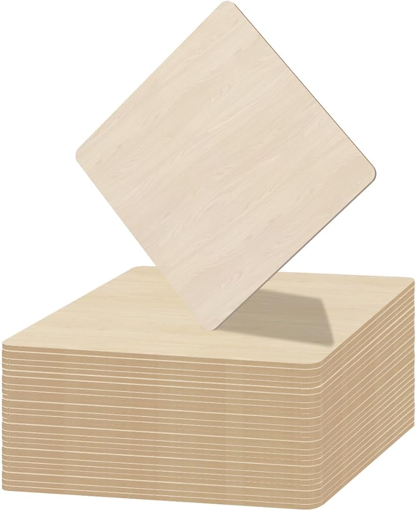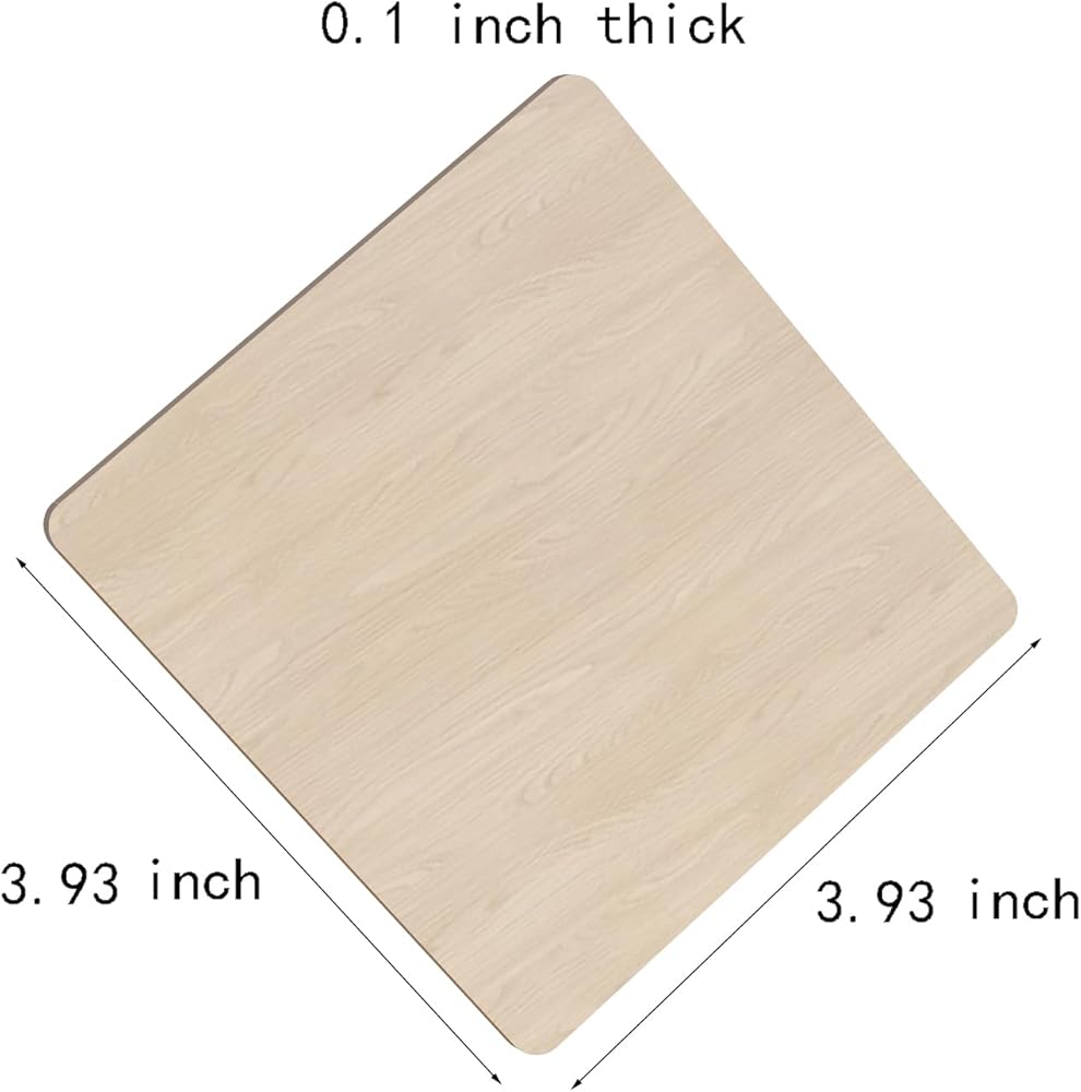 Wood square size: package includes 40 pieces 2.7 x 2.7 inches square wood pieces, 2.5mm in thickness. Note: Please carefully check size before purchase. Please allow slight size error due to manual measurement. Natural Wood Board: Our blank wood chips are made of natural poplar wood, not easy to break, very smooth surface, no pungent odor, very environmentally friendly. Meticulous design: each slice is laser cut without burrs, rounded corners design, fashionable and beautiful, to avoid the sharp corners caused by the injury. You can easily cut it into the size and shape for various craft needs. WIDE USE: The unfinished craft wood pieces are perfect for painting, Scrabble games, home decorations, Christmas decorations and more.
