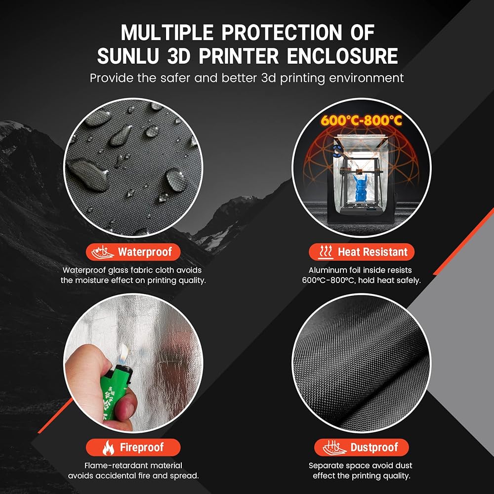 ③【حماية متعددة】قماش قماش زجاجي مقاوم للماء يتجنب تأثيرات الرطوبة على جودة الطباعة ثلاثية الأبعاد. رقائق الألومنيوم من الداخل تقاوم 600 درجة مئوية - 800 درجة مئوية، وتحتفظ بالحرارة بأمان. مادة مثبطة للهب مقاومة للحريق تتجنب الحريق العرضي والانتشار. مساحة منفصلة لتجنب تأثير الغبار على جودة الطباعة. تساعد حاوية الطابعة SUNLU ثلاثية الأبعاد أيضًا كثيرًا في التخلص من الرائحة التي تأتي مع الراتنجات ثلاثية الأبعاد.