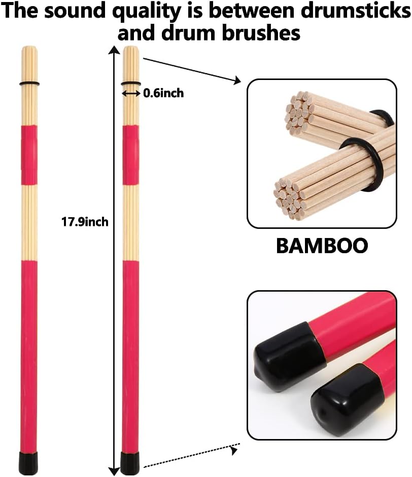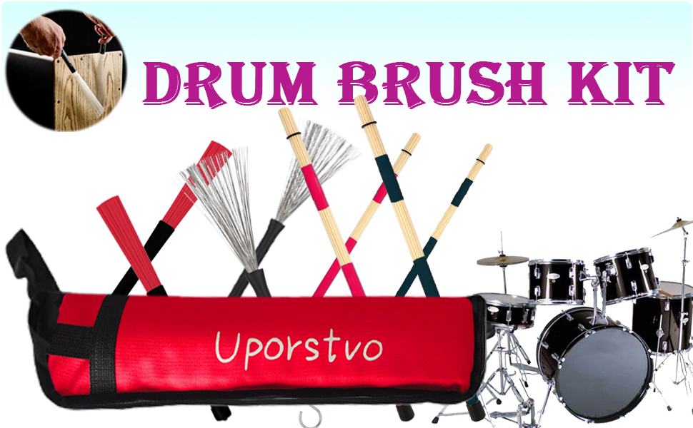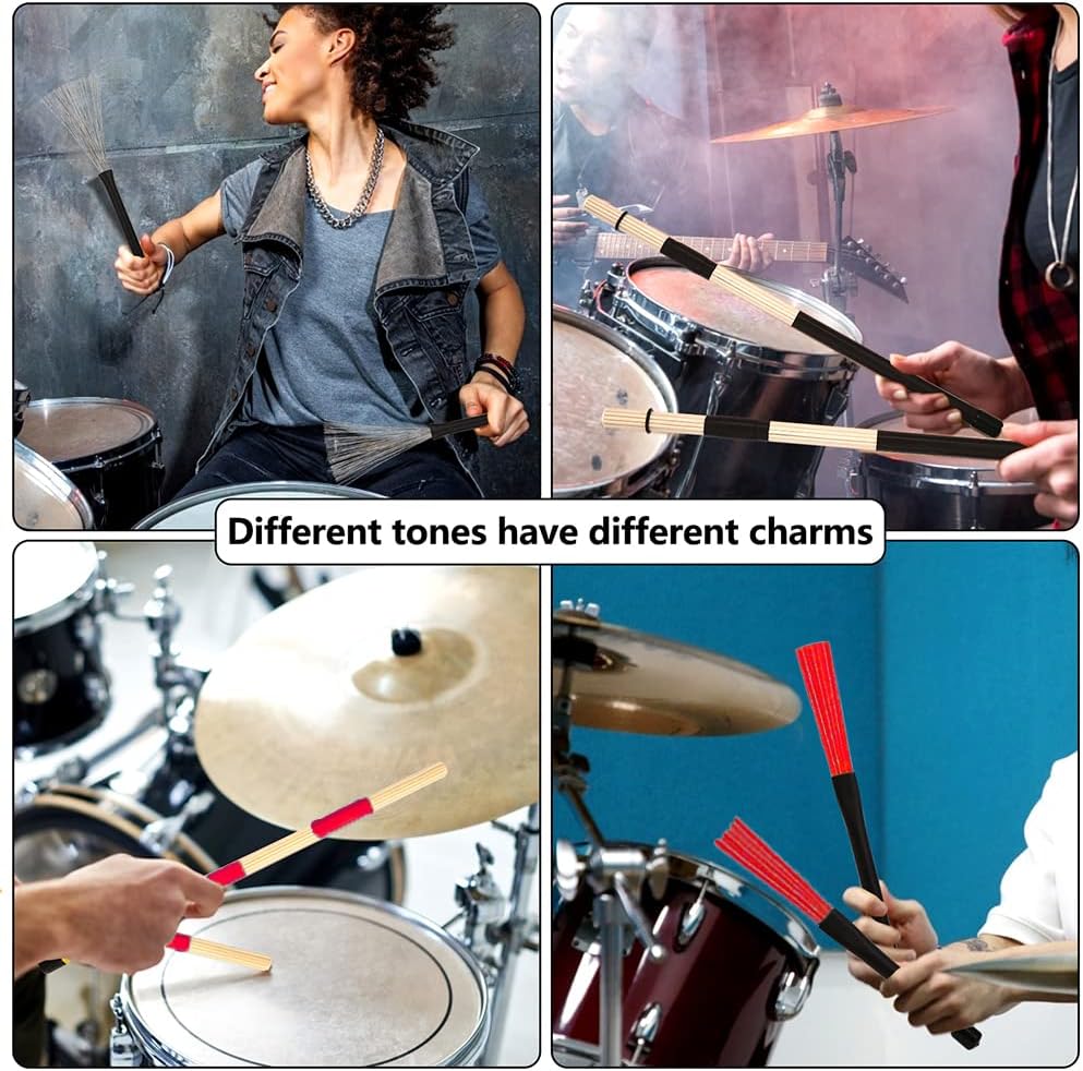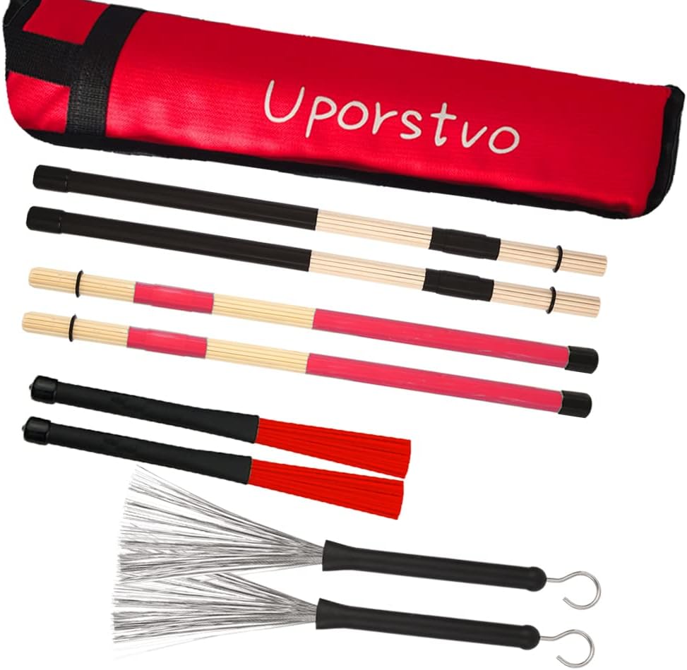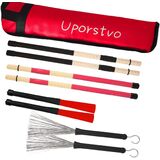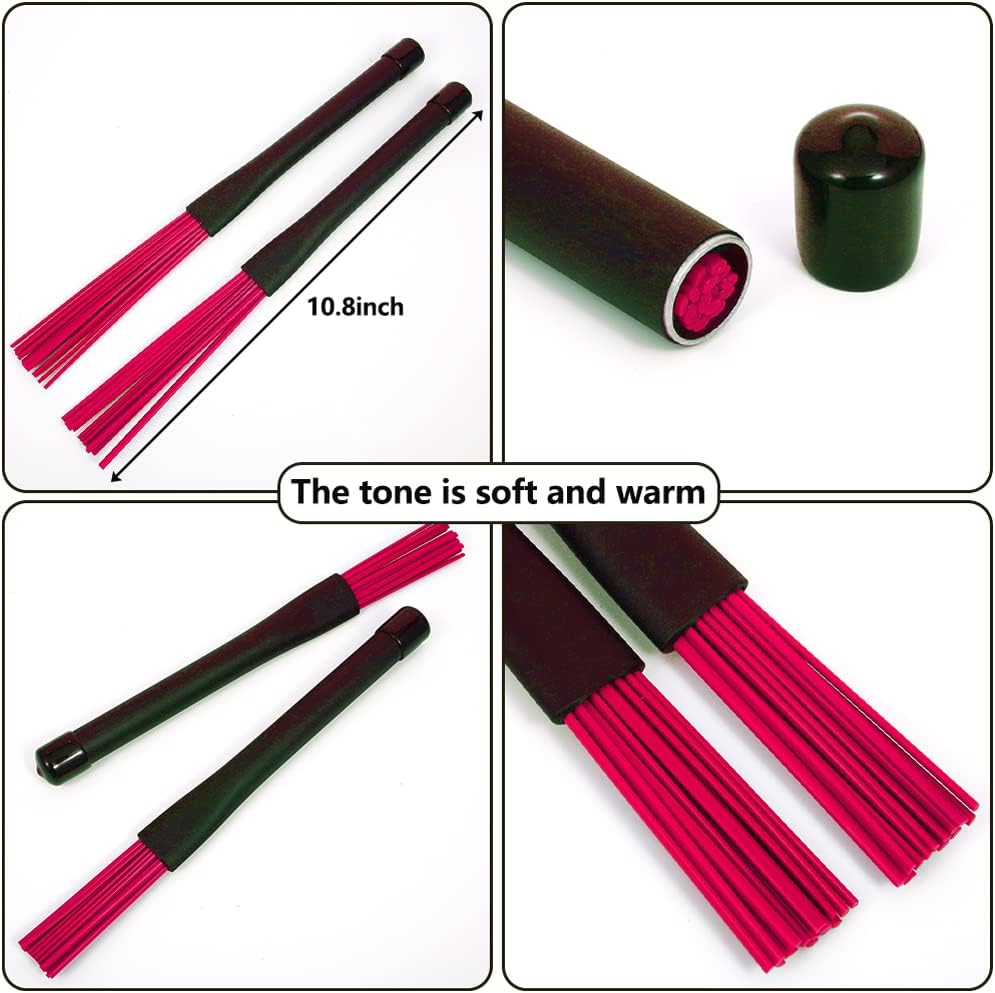 مجموعة فرشاة الطبل، زوج واحد من فرش الأسلاك المعدنية كاهون وزوج واحد من فرش نايلون الجاز، زوج واحد من قضبان ربط الخيزران الإيقاعية، زوج واحد من أعواد البتولا متعددة القضبان، مع حقيبة عصا الطبل الحمراء، تحمل ما يصل إلى 4 أزواج من أعواد الطبل