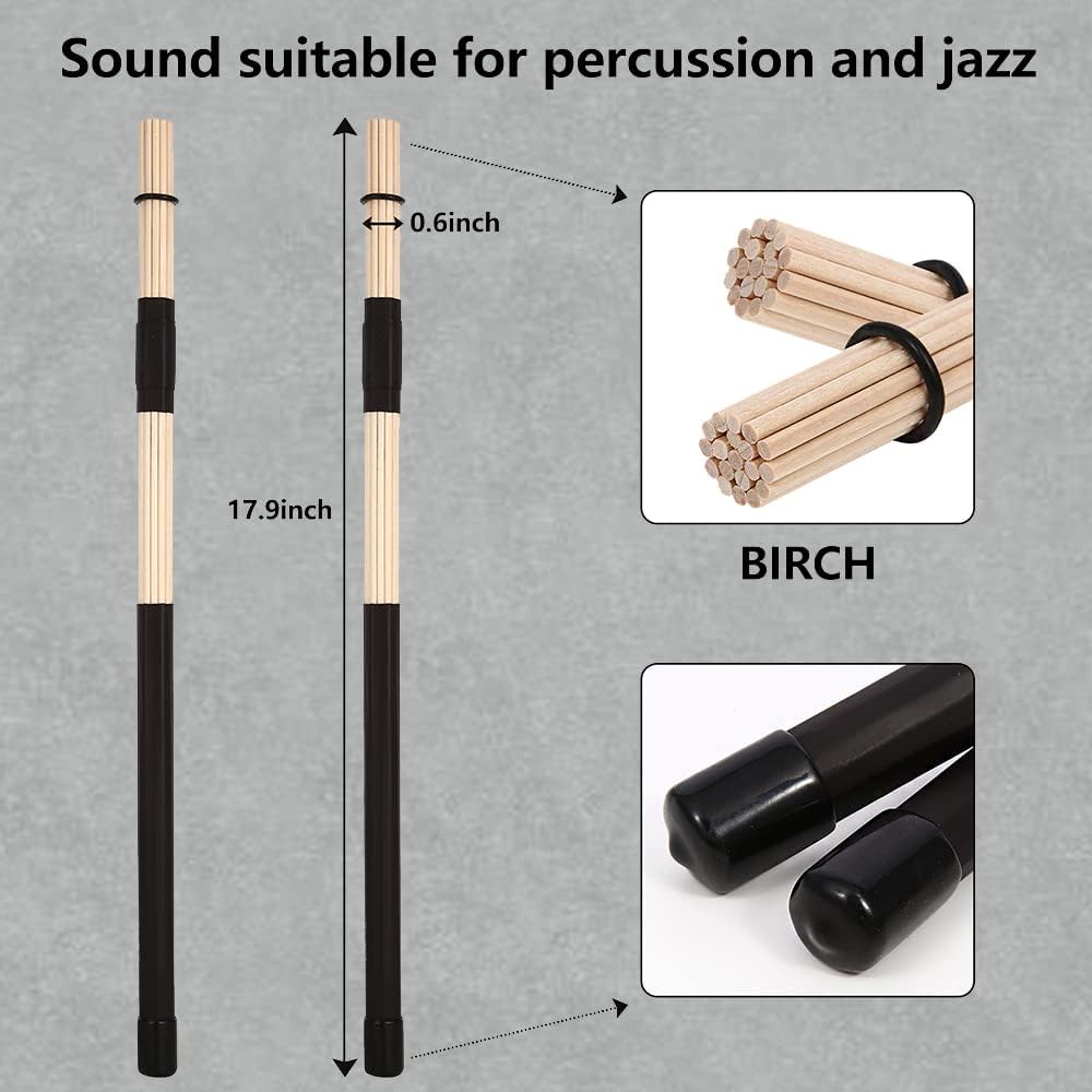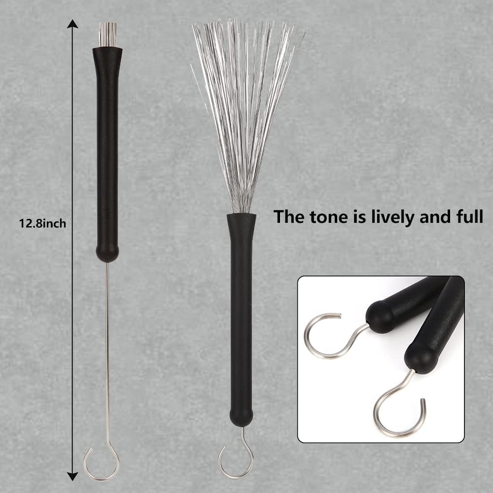 • التصميم الكلاسيكي: فرش طبلة الجاز ذات الأسلاك المعدنية وفرش النايلون لها مقابض مطاطية قابلة للسحب، و19 حزمة من عصي طبلة فرشاة الخيزران وفرش طبلة البتولا مجهزة بحلقات تحكم قابلة للتعديل.