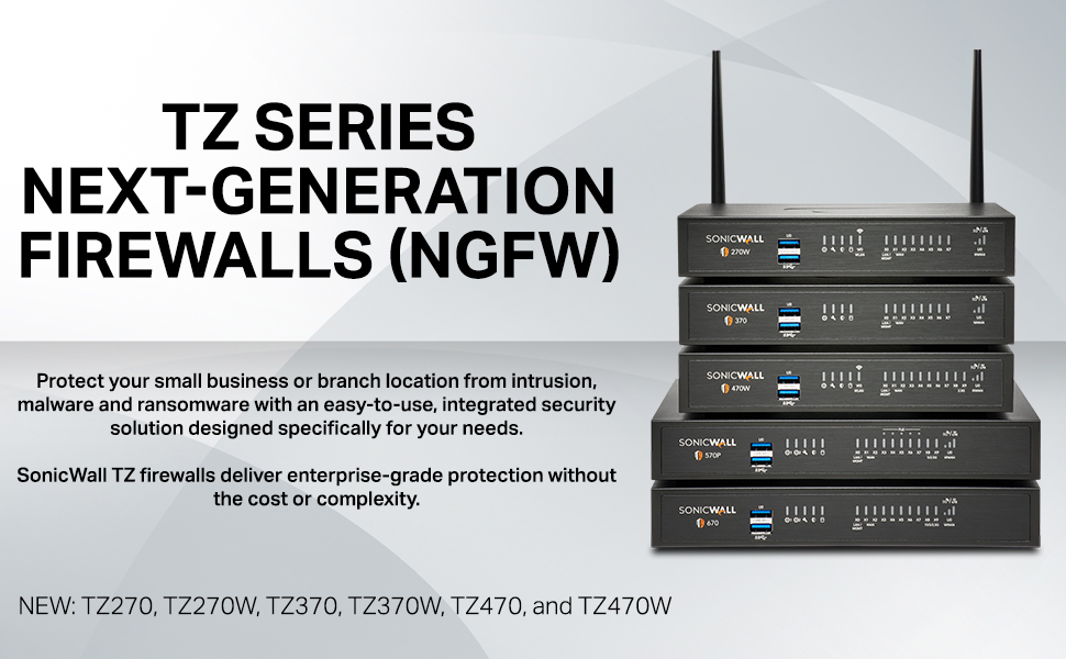• The latest SonicWall TZ470 series, are the first desktop form factor nextgeneration firewalls (NGFW) with 10 or 5 Gigabit Ethernet interfaces. The series consist of a wide range of products to suit a variety of use cases.