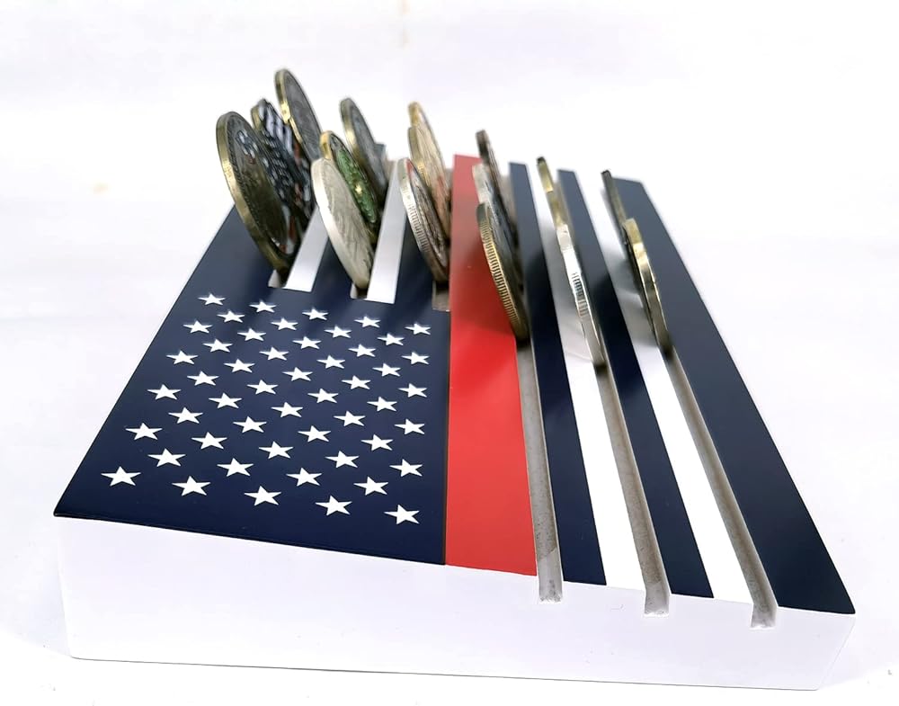 Personalized handcrafted US flag coin display Stand,Measures 11.9 x 6.3 x 0.8IN,