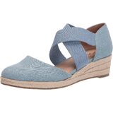 Slip into something fun and chic with the incredibly comfy espadrille wedge. Fabric, denim, or canvas upper with a round toe, crisscrossing stretch gore straps, and espadrille-inspired rope detailing.