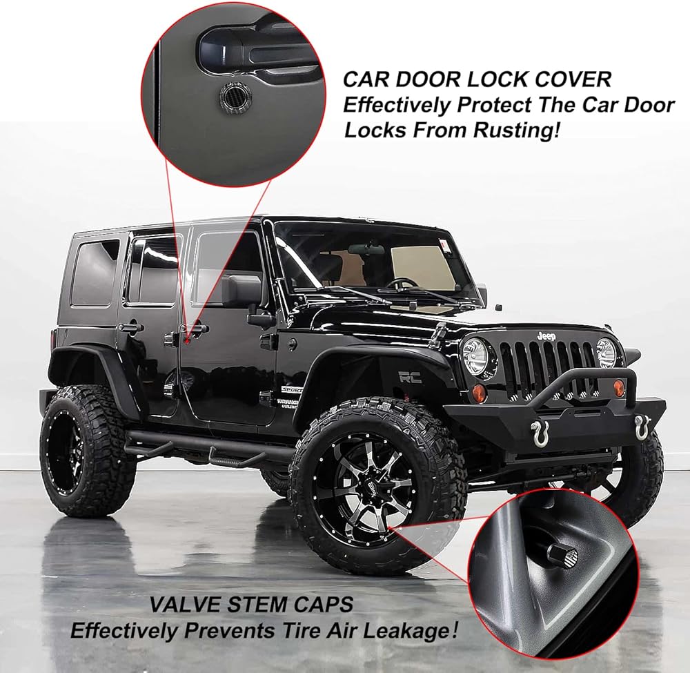 ⭐BUILT TO LAST & MAINTAIN RESALE VALUE FOR JEEP ACCESSORIES: Crafted from high-quality materials, our car door lock covers for jeep wrangler accessories JL JK TJ & jeep gladiator accessories JT are built to withstand the elements and provide long-lasting protection. Protecting your SUV door locks from rust and damage can help preserve its resale value and keep it looking pristine!