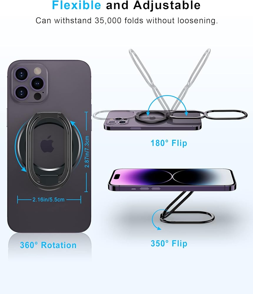 【مسند متعدد الزوايا قابل للتعديل】دوران 360 درجة وذراعان قابلان للتعديل يجعلها أكثر ملاءمة لتوفر لك زوايا رؤية أكثر من أي حامل حلقة هاتف خلوي آخر أو حامل هاتف. يمكنك حمل هاتفك بأي زاوية وارتفاع كما تريد. تم اختبار حلقة إصبع الهاتف لتحمل 35000 مرة من الطي دون أن ترتخي.