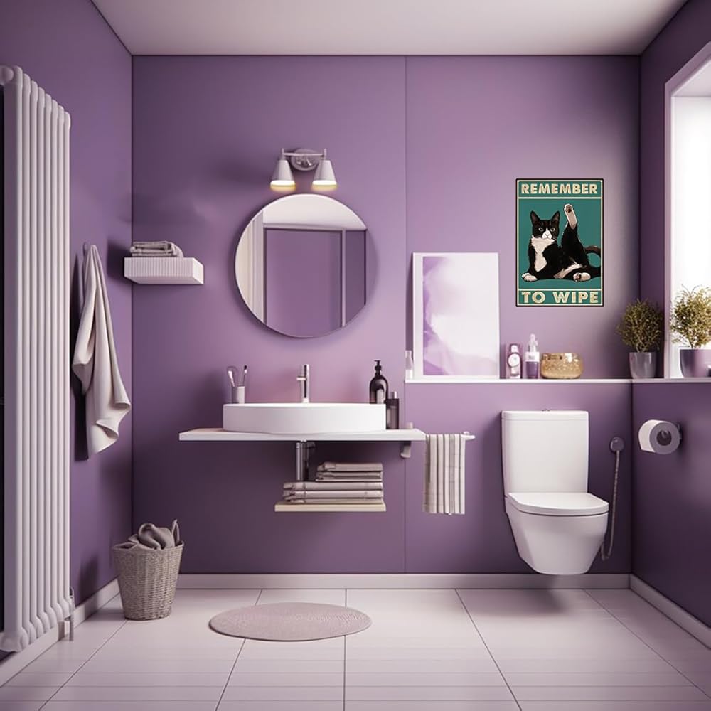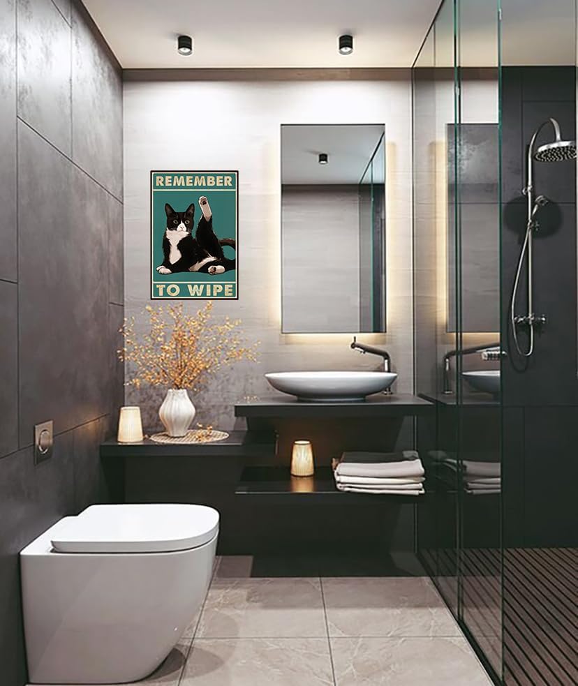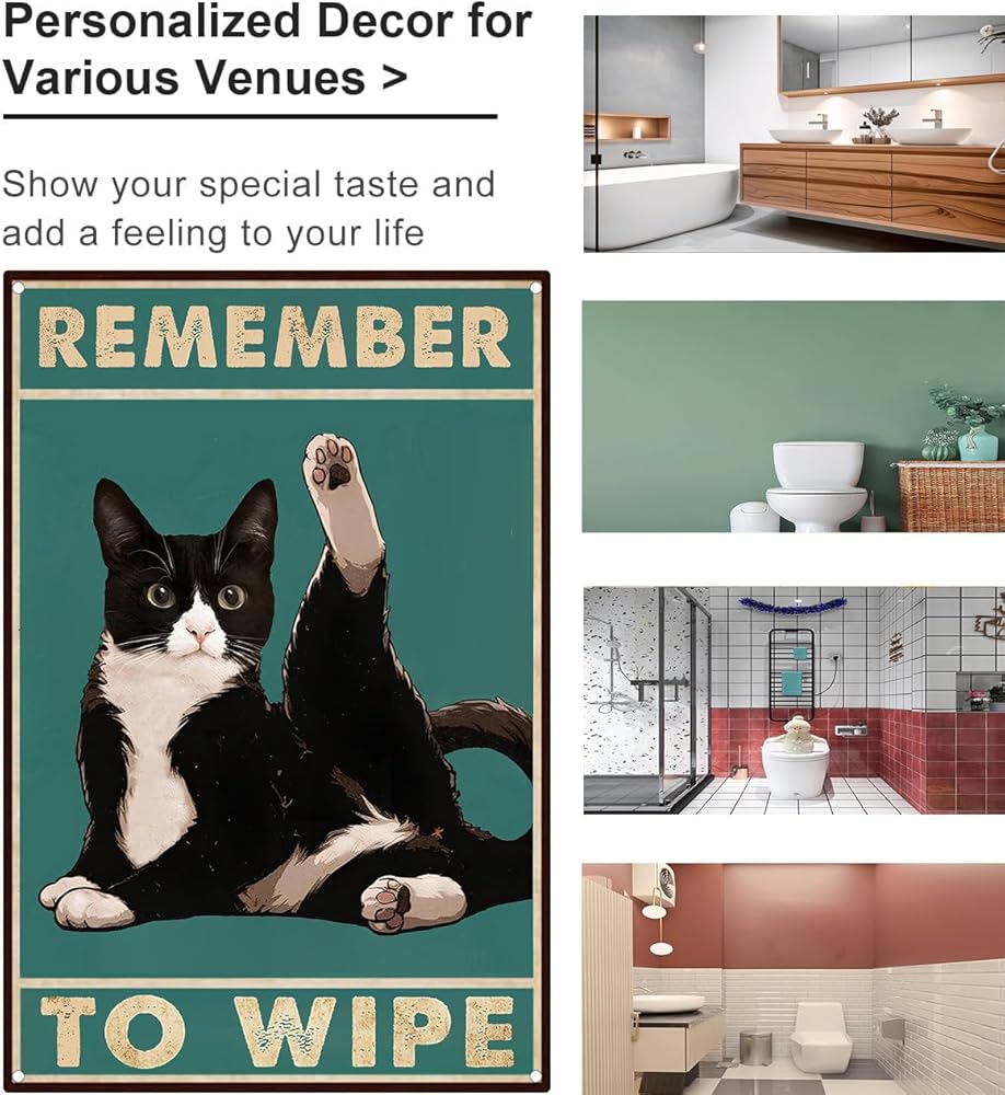 ديكور حمام القطط المضحك: اللافتة ذات تصميم القطة الرسمية مثالية لأي منزل محب للقطط. يبلغ مقاسها 8 × 12 بوصة وهي مصنوعة من معدن متين، مما يجعلها إضافة طويلة الأمد لديكور حمامك.