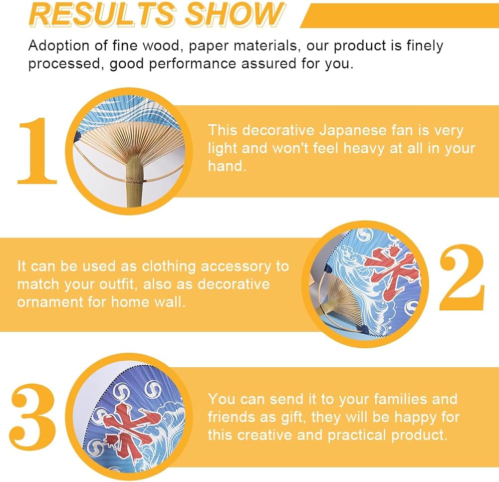 🌊Hand Fan Paper With Handle: Comes with 1pc japanese hand fan. The size is about 38.00X23.50X0.50cm/ 14.93X9.24X0.20inch., portable to carry, and suitable for daily life.
