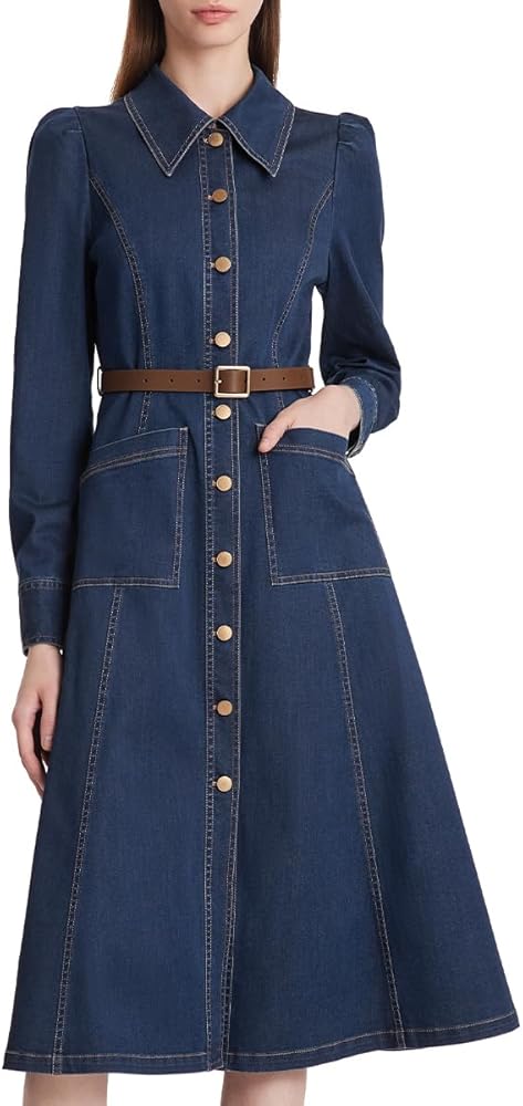 المميزات - يتميز هذا الفستان النسائي متوسط الطول بنمط كلاسيكي من قطعة واحدة، ويشكل خطًا نظيفًا من ياقة طية الصدر إلى الحاشية، كما يعمل حزام الجينز على تحسين نسب الجسم لإظهار منحنيات جسمك المثيرة. تضيف الأزرار المعدنية العتيقة الأناقة إلى ملابس الدنيم. الجيوب الوظيفية مناسبة لك لوضع هاتفك أو بعض الأشياء الصغيرة.