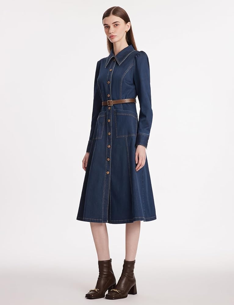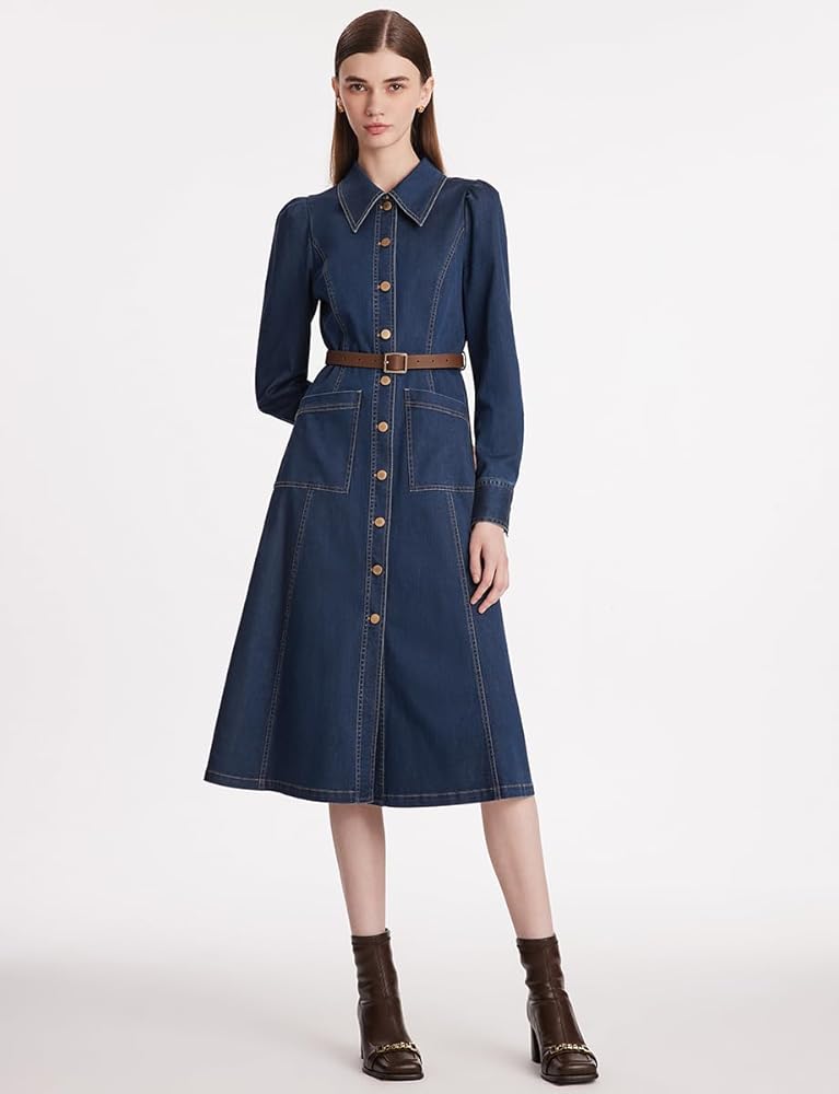 المادة - هذا الفستان الدنيم 3/4 كم للنساء في عام 2024 مصنوع بشكل أساسي من نسيج قطني يضمن التهوية. ويجمع هذا الفستان الجينز بين المتانة والراحة، مما يجعله خيارًا ممتازًا للارتداء طوال اليوم.