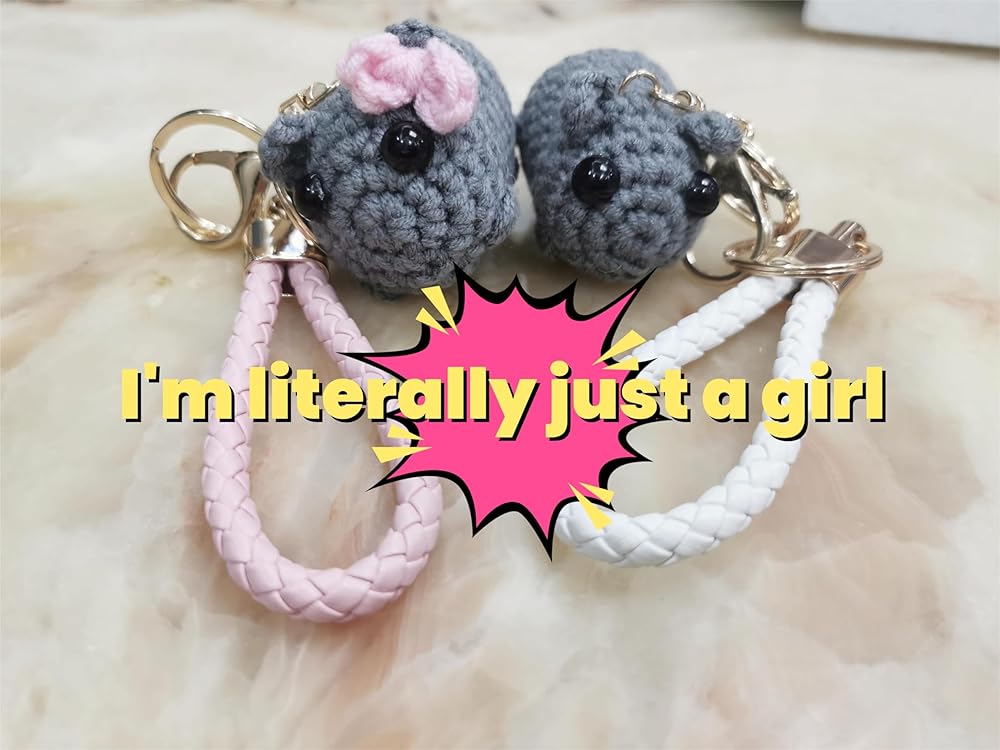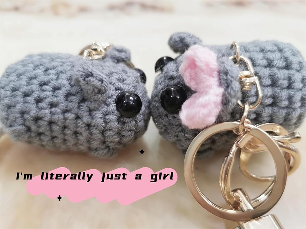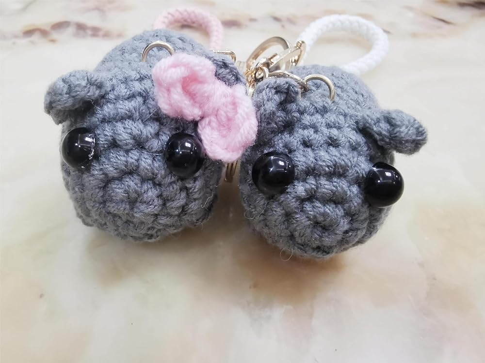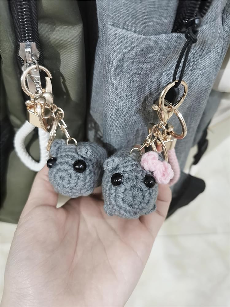 UNIQUE DESIGN:The sad hamster keychain hamster-coquette,With its droopy ears, this tiny crocheted creation is melting hearts everywhere.Fall in love with its simplicity and emotional charm.Get in on the adorable trend with this irresistible hamster keychain! It's the perfect accessory to add some charm to your keys or backpack. Trust me, it's too cute to resist!