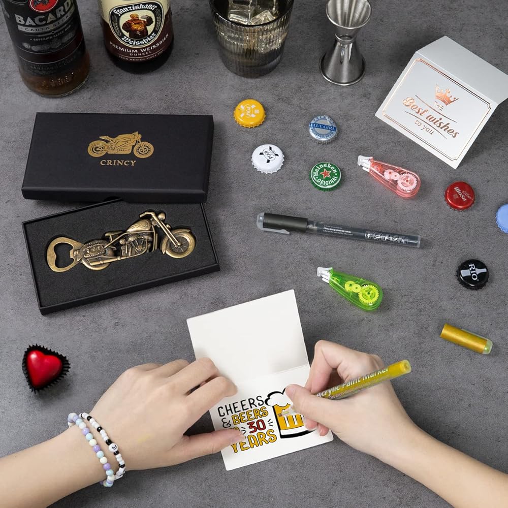 [معبأة بشكل لطيف مع بطاقة تهنئة]: فتاحة زجاجات الدراجة النارية الخاصة بنا تأتي مع بطاقة تهنئة معبأة في صندوق هدايا جميل، وهو مناسب جدًا كهدية. ذكّر زوجك أو صديقك أو والدك بمدى تميزهم بالنسبة لك من خلال بطاقة أمنيات جميلة.
