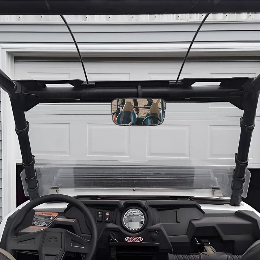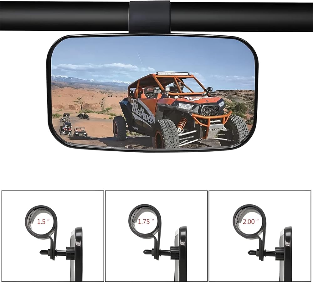 مرآة الرؤية الخلفية UTV/ATV، مرآة داخلية بانورامية واسعة النطاق للسيارة، زاوية قابلة للتعديل 360 درجة، مرآة محدبة شفافة مضادة للوهج مع حامل على شكل قفص ملتف، عالمية لجميع مركبات التضاريس