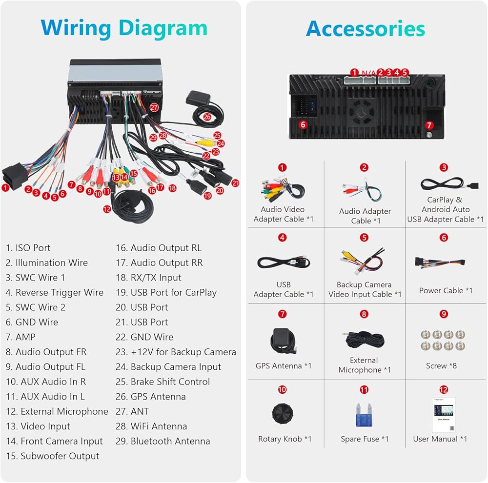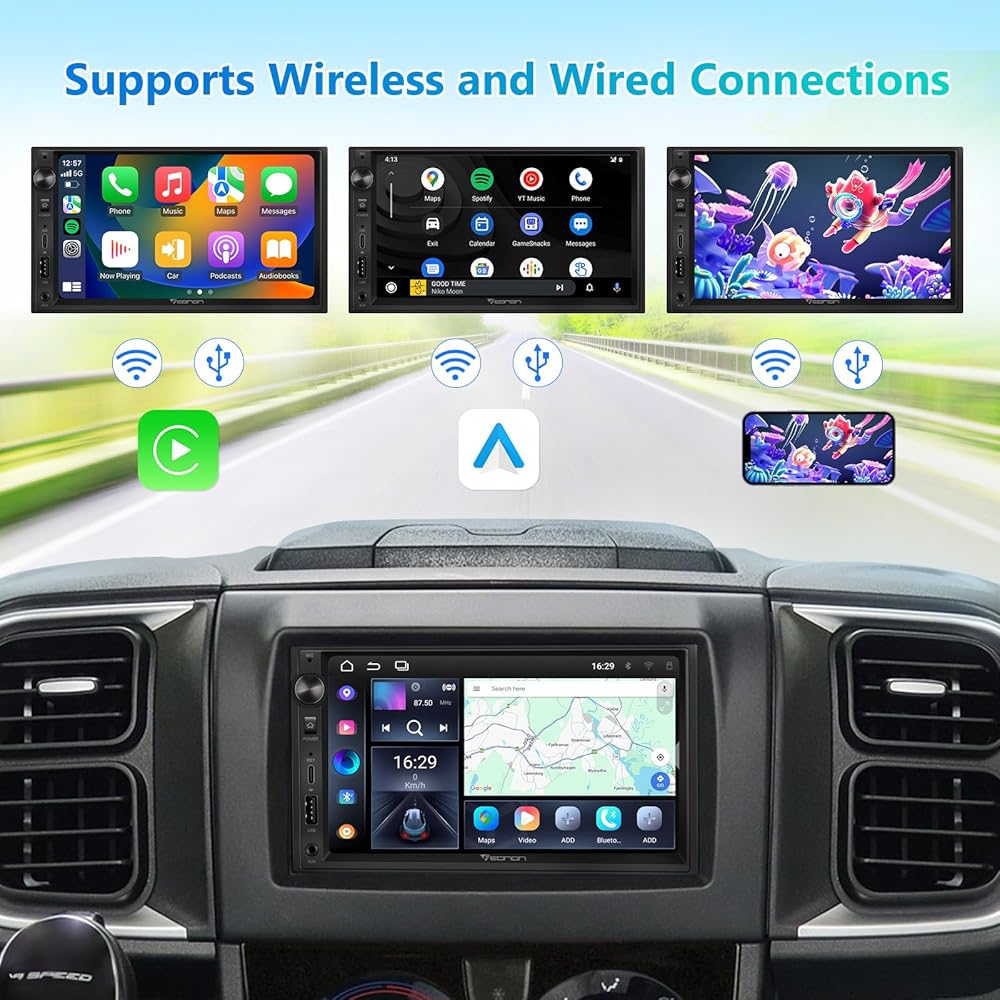 📷 【CarPlay لاسلكي/سلكي وAndroid Auto】استمتع براحة تامة دون استخدام اليدين مع دعم CarPlay وAndroid Auto بالوحدة الرئيسية UA13!! ما عليك سوى قول "Hey Siri" أو "Hey Google" لتنشيط Siri أو Google Assistant، مما يتيح التحكم بدون استخدام اليدين في الموسيقى والملاحة والمكالمات الهاتفية والرسائل، مما يعزز سلامة القيادة وراحتك من خلال ميزات استريو السيارة UA13 المتقدمة. بالإضافة إلى ذلك، يمكنك أيضًا عكس التطبيقات من هاتفك على شاشة ستيريو السيارة عبر انعكاس الشاشة.