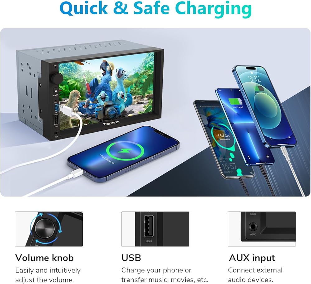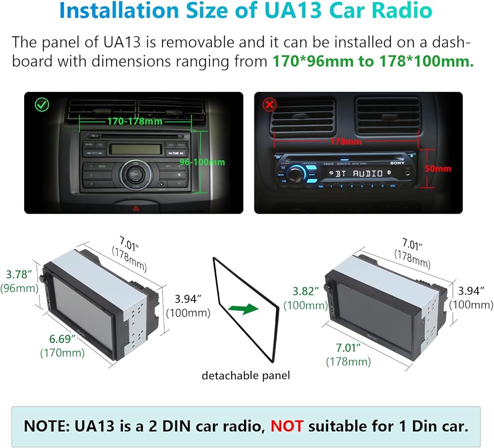 ☞توافق واسع النطاق: UA13 عبارة عن وحدة رأس عالمية مزدوجة DIN مقاس 7 بوصات، وتوفر أحجامًا قابلة للتعديل. يمتد نطاق الحجم المطبق للوحة من 170*96 مم إلى 178*100 مم، وهو متوافق مع معظم مجموعات أدوات تثبيت طراز السيارة. تحقيق تكامل سلس للوحة المعلومات بعد التثبيت. مزود بمقبض مستوى الصوت وأزرار مادية لمزيد من الراحة، يعمل استريو السيارة UA13 على تحسين تجربة القيادة الخاصة بك. يضمن منفذ الشحن السريع من النوع C بقاء هاتفك قيد التشغيل أثناء القيادة