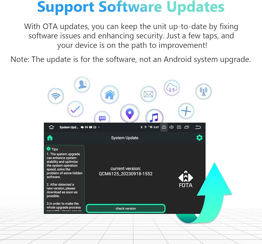 ☞【نظام Android 13 الحقيقي】مدمج مع أحدث إصدار من Android 13 (مستوى API 33)، مقترنًا بمعالج Rockchip المتطور للحصول على أداء فائق وكفاءة في استخدام الطاقة، متجاوزًا المعالجات التقليدية ذات 8 النواة. يوفر راديو السيارة Eonon UA13 تحديثات البرامج الثابتة عبر الإنترنت، مما يلغي الحاجة إلى ترقية وحدة USB.