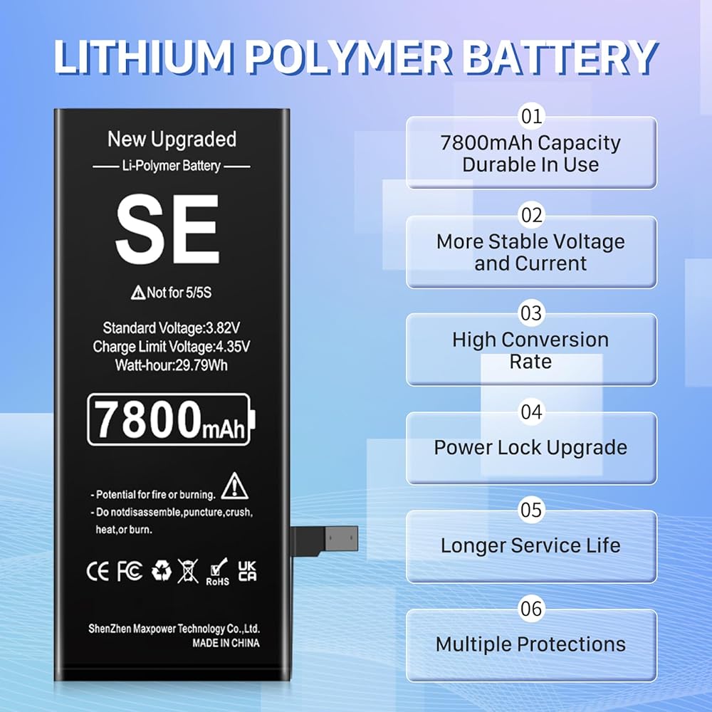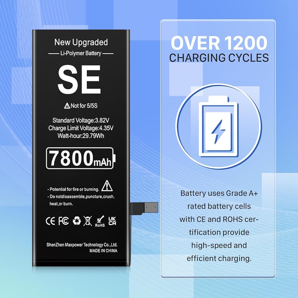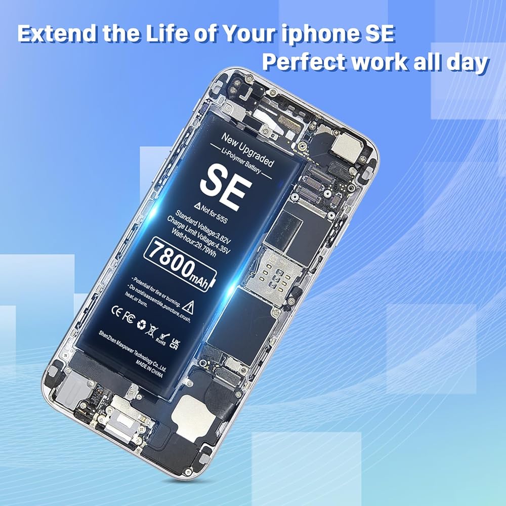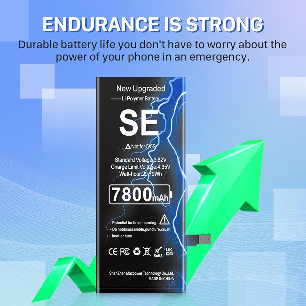 بطارية لهاتف iPhone SE 2016 الجيل الأول، بطارية ليثيوم بوليمر مطورة بقدرة 7800 مللي أمبير في الساعة فائقة السعة بديلة لهاتف iPhone SE موديل A1662، A1723، A1724 مع مجموعة أدوات الإصلاح