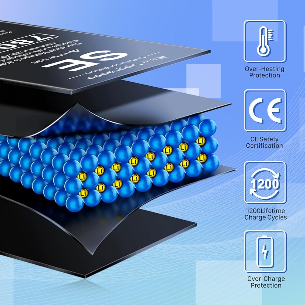 • ✴︎(عمر بطارية طويل): بطارية بديلة عالية السعة لهاتف iPhone SE، نوع البطارية: ليثيوم أيون، سعة البطارية: 7800 مللي أمبير، واط/ساعة: 29.79 وات في الساعة، خرج الجهد: 3.82 فولت. دورة 0 جديدة تمامًا، مصممة لتدوم ما يصل إلى 1200 دورة شحن لتوفير عمر بطارية أطول. أعد عمر بطارية iPhone SE Model A1662، A1723، A1724 إلى المجد.