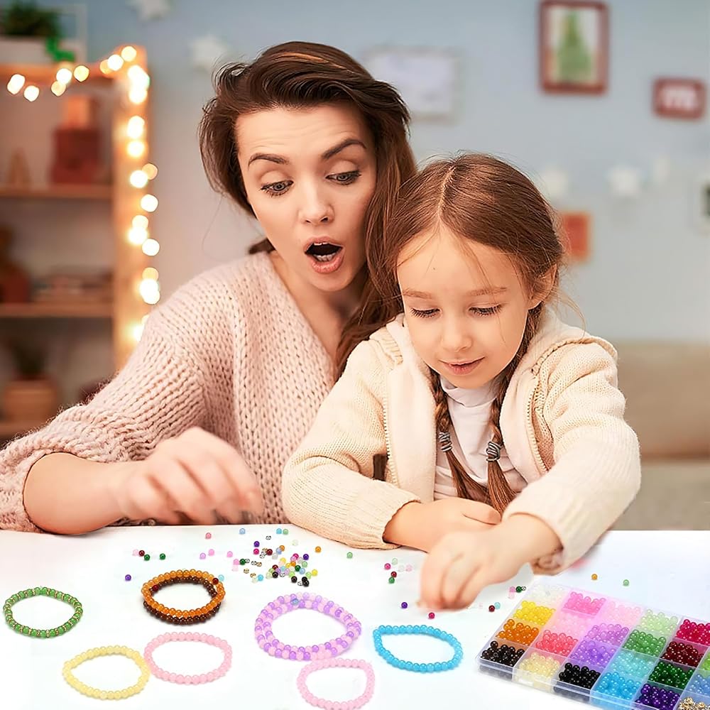 • تشكيلة خرز متعددة الاستخدامات: تحتوي مجموعة صنع أساور يلوفيش هذه على 1100 قطعة من الخرز الزجاجي عالي الجودة مقاس 6 مم في 24 لونًا مذهلاً، مثالية لإنشاء قطع مجوهرات متنوعة، من الأساور إلى القلائد. مثالية لكل من الحرفيين المبتدئين والمتمرسين.