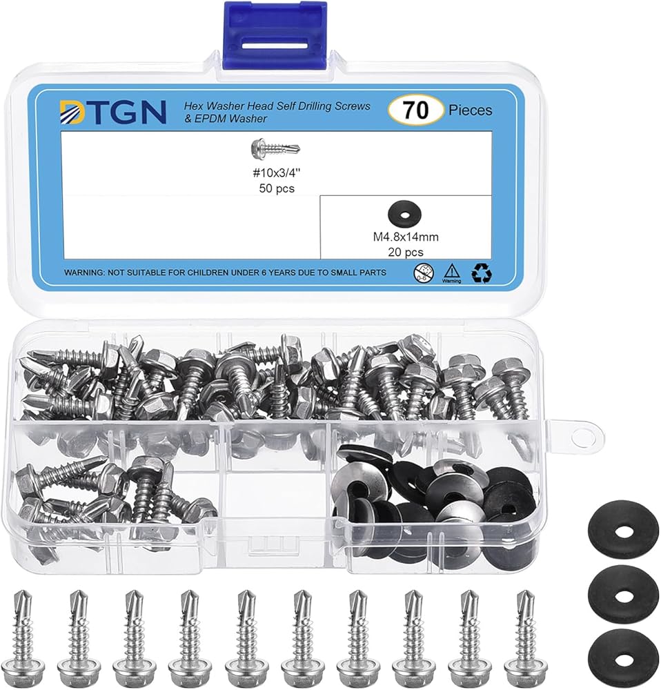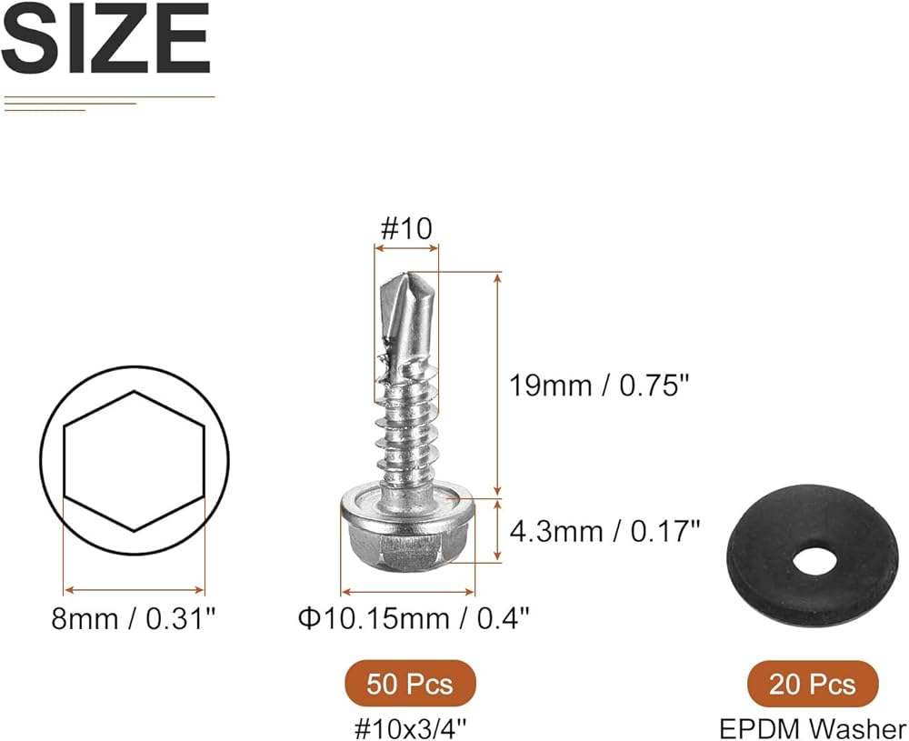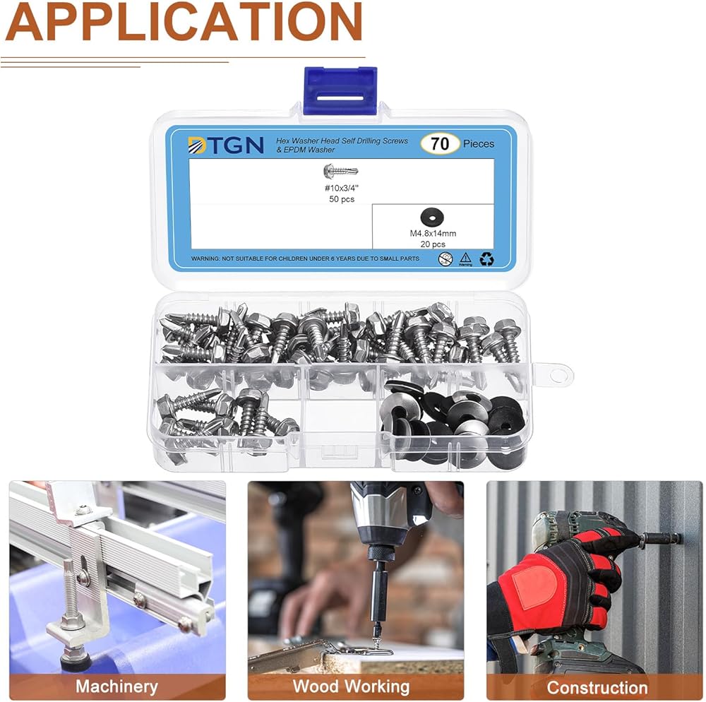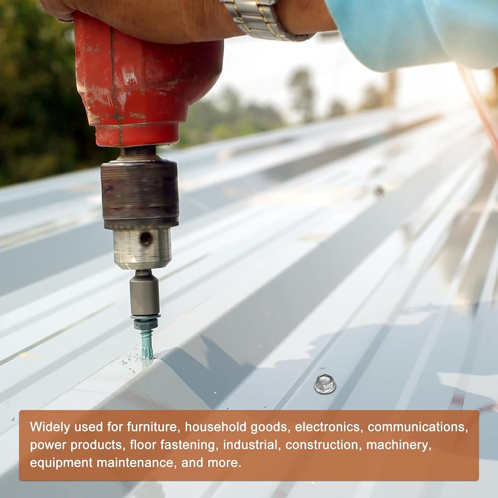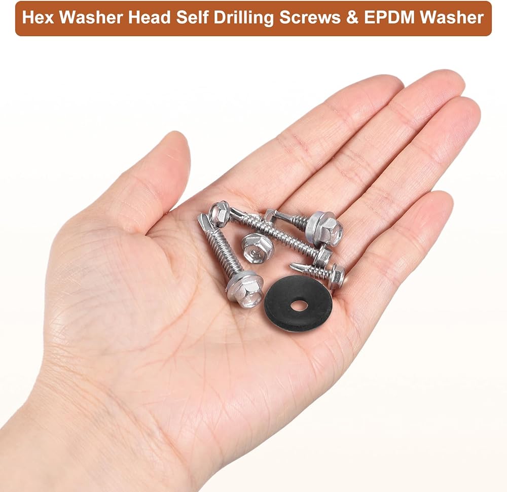 Feature - The metal sheet screws are designed with an external hex drive style with washer, preventing slippage and ensuring a strong hold. The self-drilling design allows faster screwing into hardwood, easy to drill into, such as wood, sheet metal steel, aluminum, plastic, or other materials, reducing cracking problems.